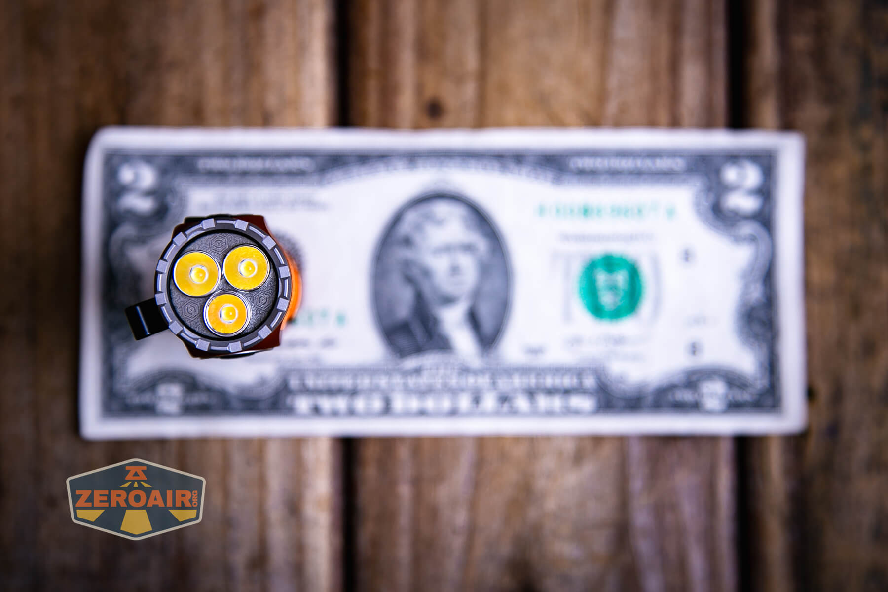 It’s hard to see it here, I think, but this light does not use an optic – each emitter has a tiny little cup reflector! If you get other “S” variants like the “other white” or UV, you may get a little filter. If you get the little filter, you will note that the secondary emitter reflector cup has a tiny lip where this filter rests comfortably. The red variant (seen here) does not have that. Among other nice touches that Skilhunt has offered on these lights, this is one. They could have just thrown all “lipped” reflectors over these secondary emitters. That they didn’t mean (either that) they are exceptionally interested in all the details being right or (/and) that the lipped reflectors are more costly. We’ve seen the driver differences in this 18350 version, so let’s assume the best of those options!