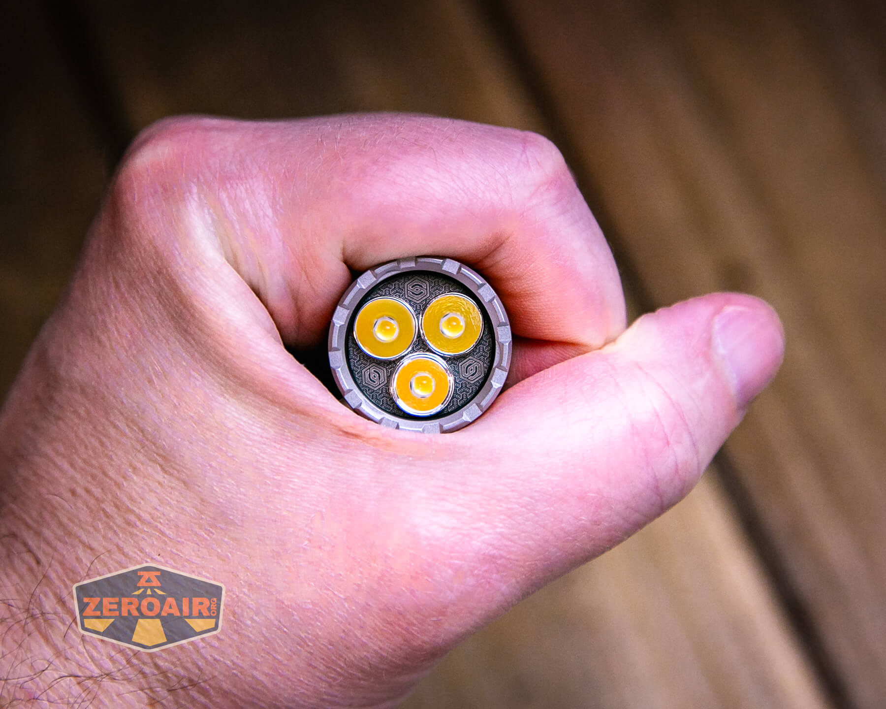 This Skilhunt EC200S EDC flashlight has three Nichia 519a emitters. It’s a “triple” in some sense, and slots right into that “BOSS” category, but this model offers a warm white secondary! I love it! It adds USB-C charging to that slot for m,e though, which is a huge bonus! The “warm white secondary” is different from the BOS,S though, since the BOSS has three main emitters, then a secondary. Either way…