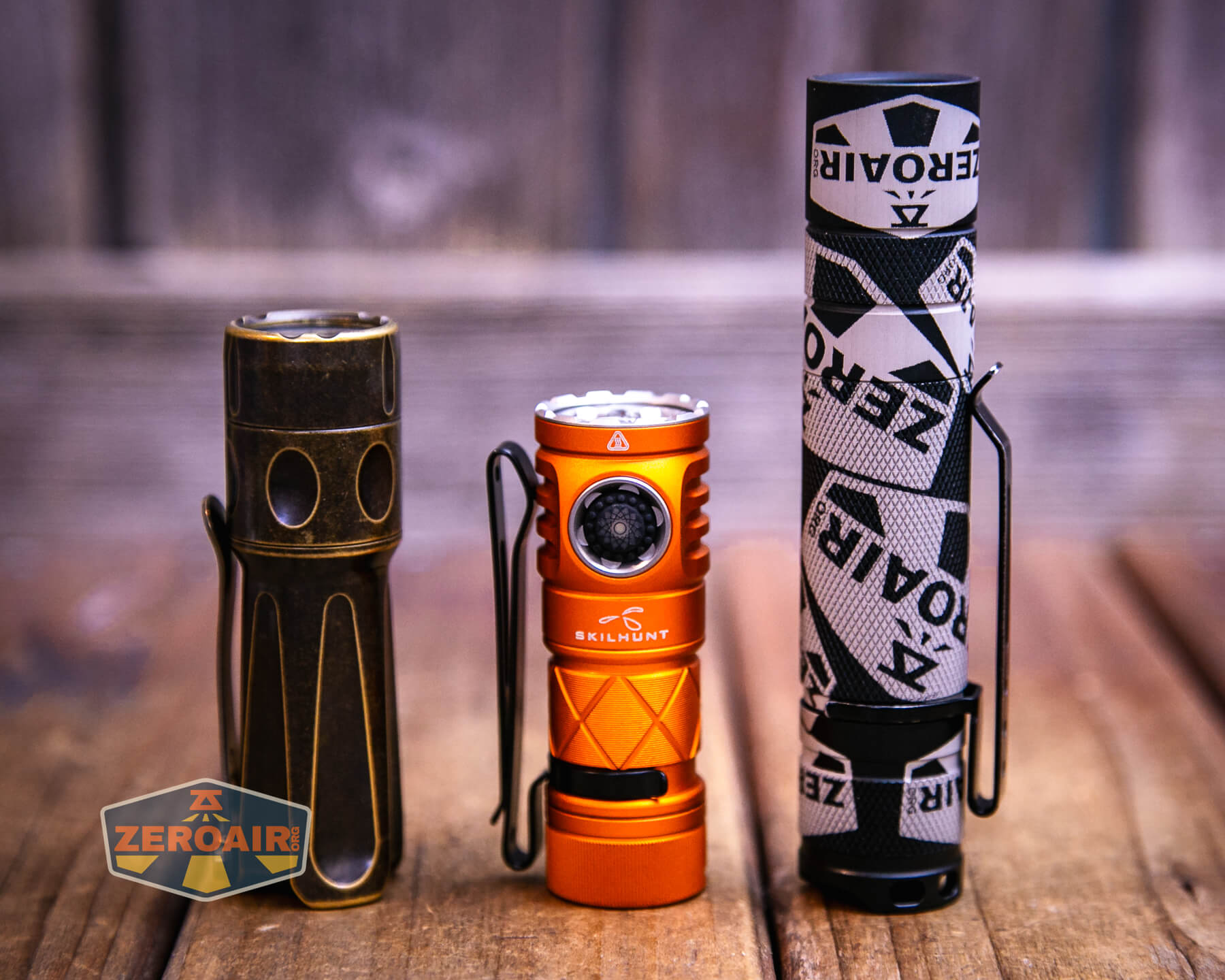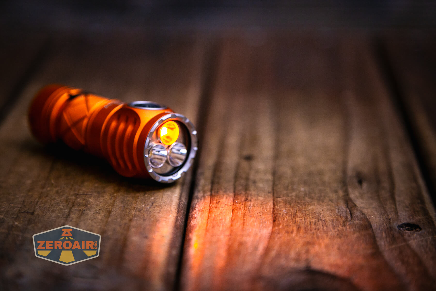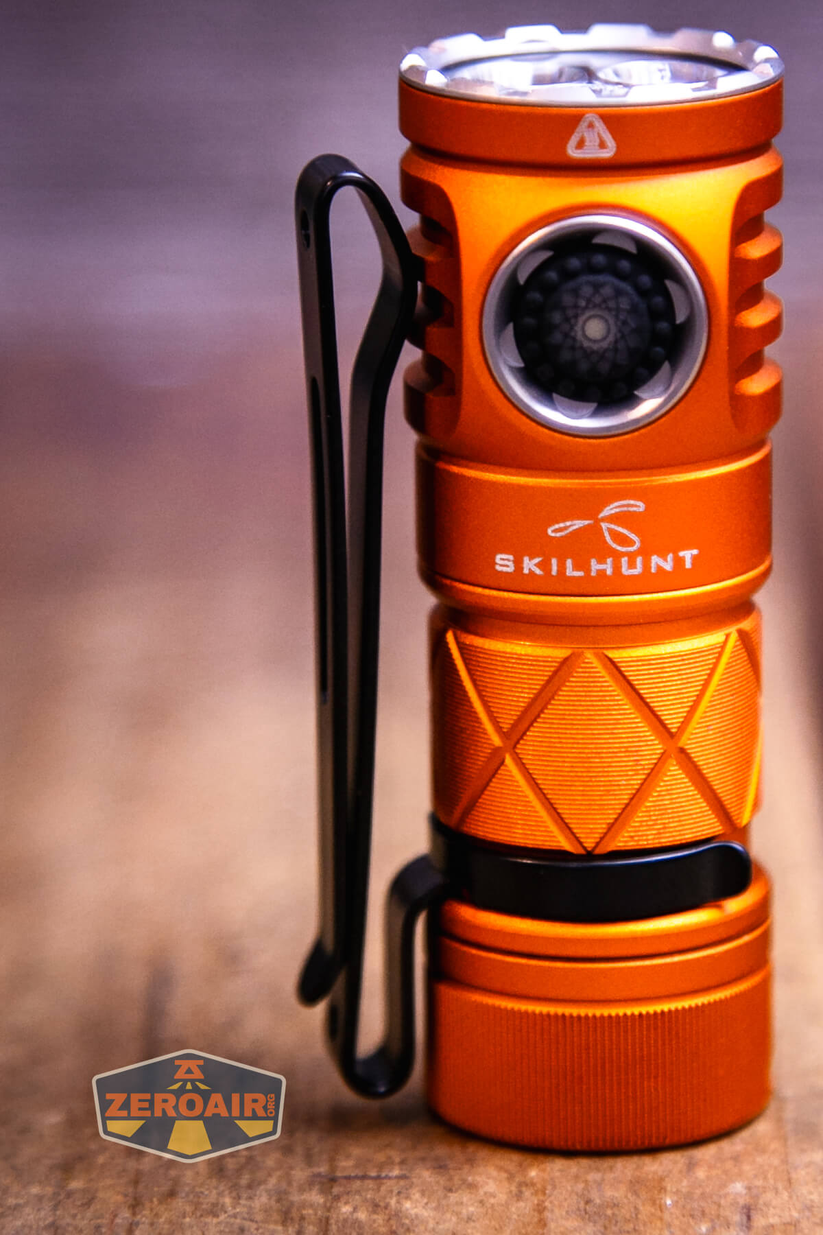 The Skilhunt EC200S Mini EDC flashlight offers two emitters and an amber filter. It has a great user interface and a bunch of other features. And it’s orange!