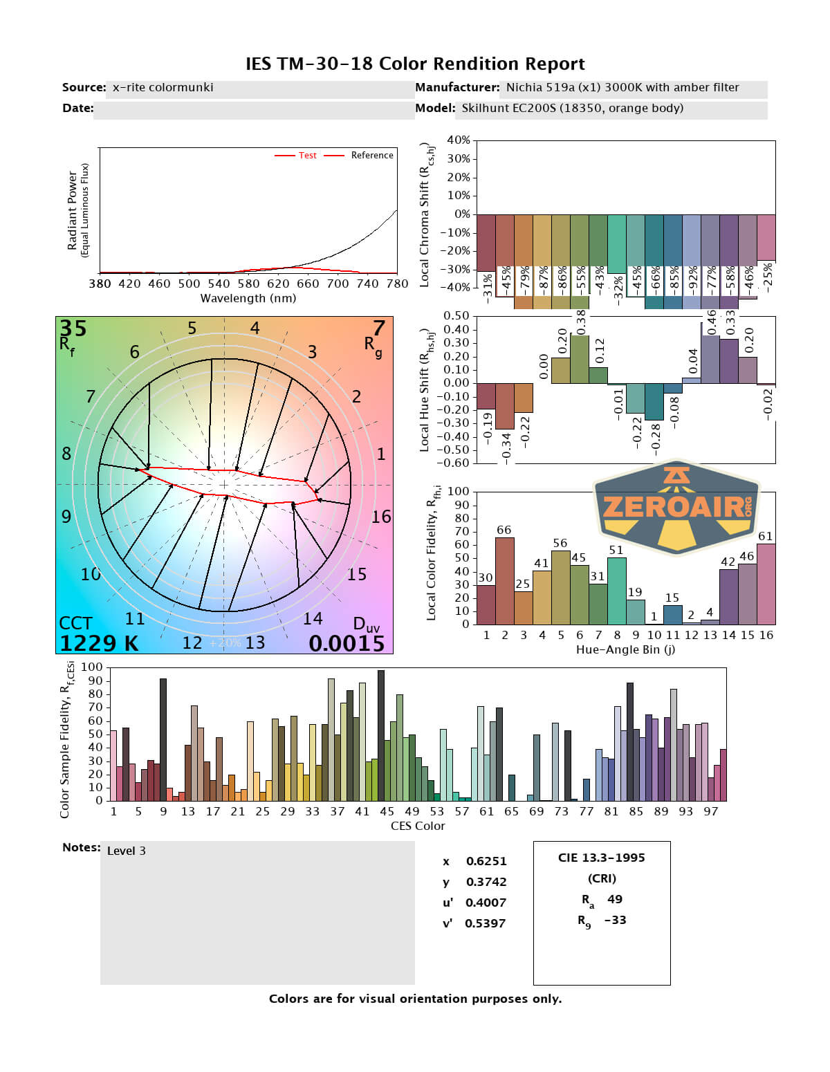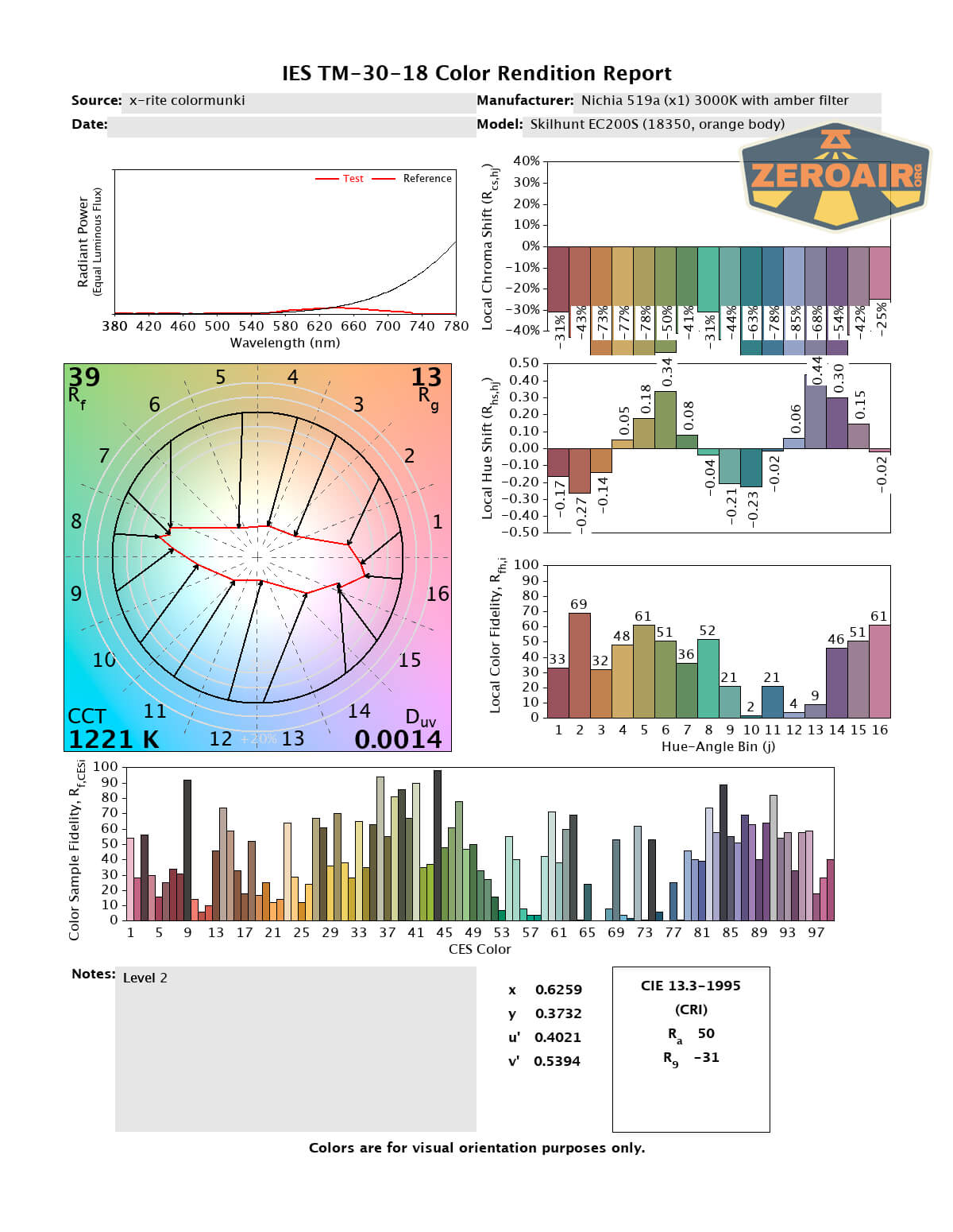 A note on the red measurements: I am not calibrated for amber output so these are just very general ideas.
