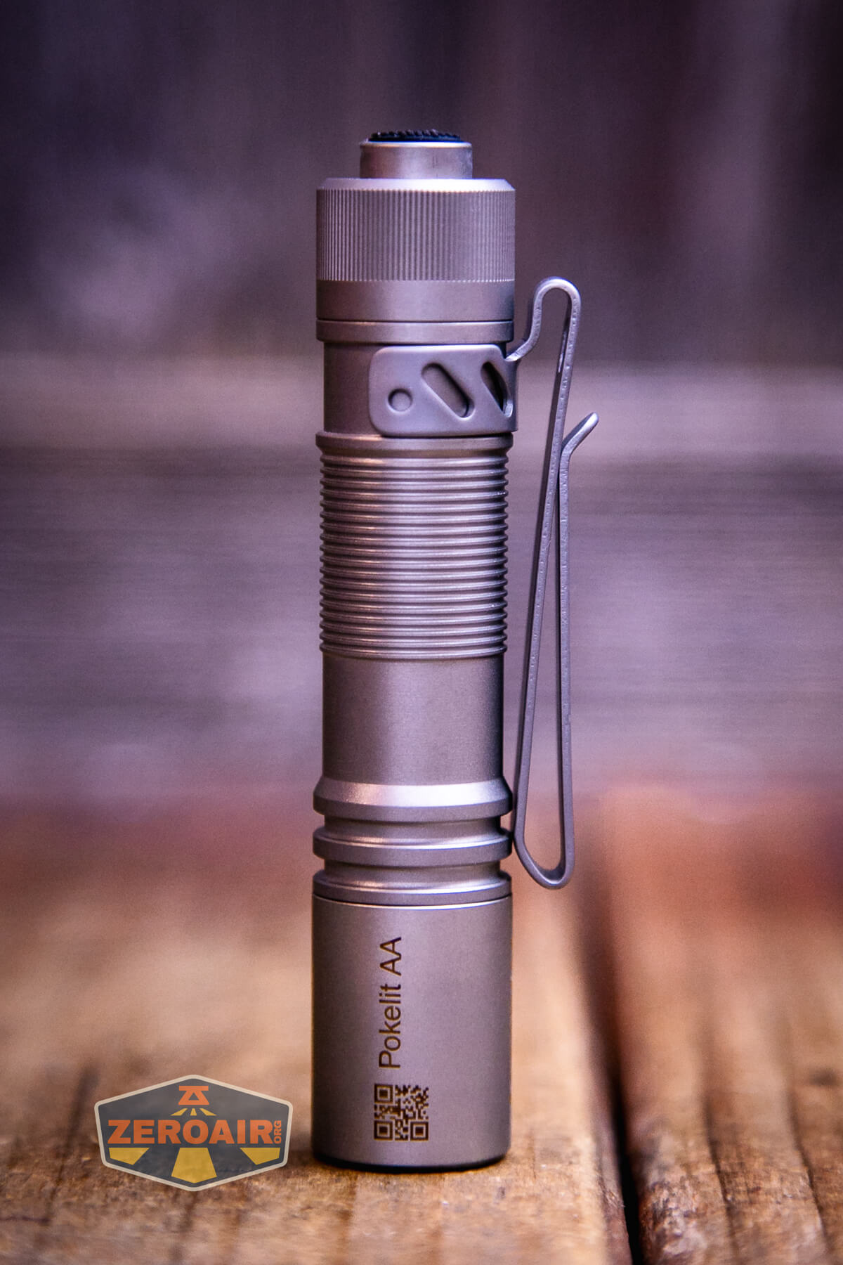 I’ve tested a number of the Pokelit flashlights now, and just a quick summary: I love them! I like this titanium version too. The light has a matte feel and is surprisingly grippy.