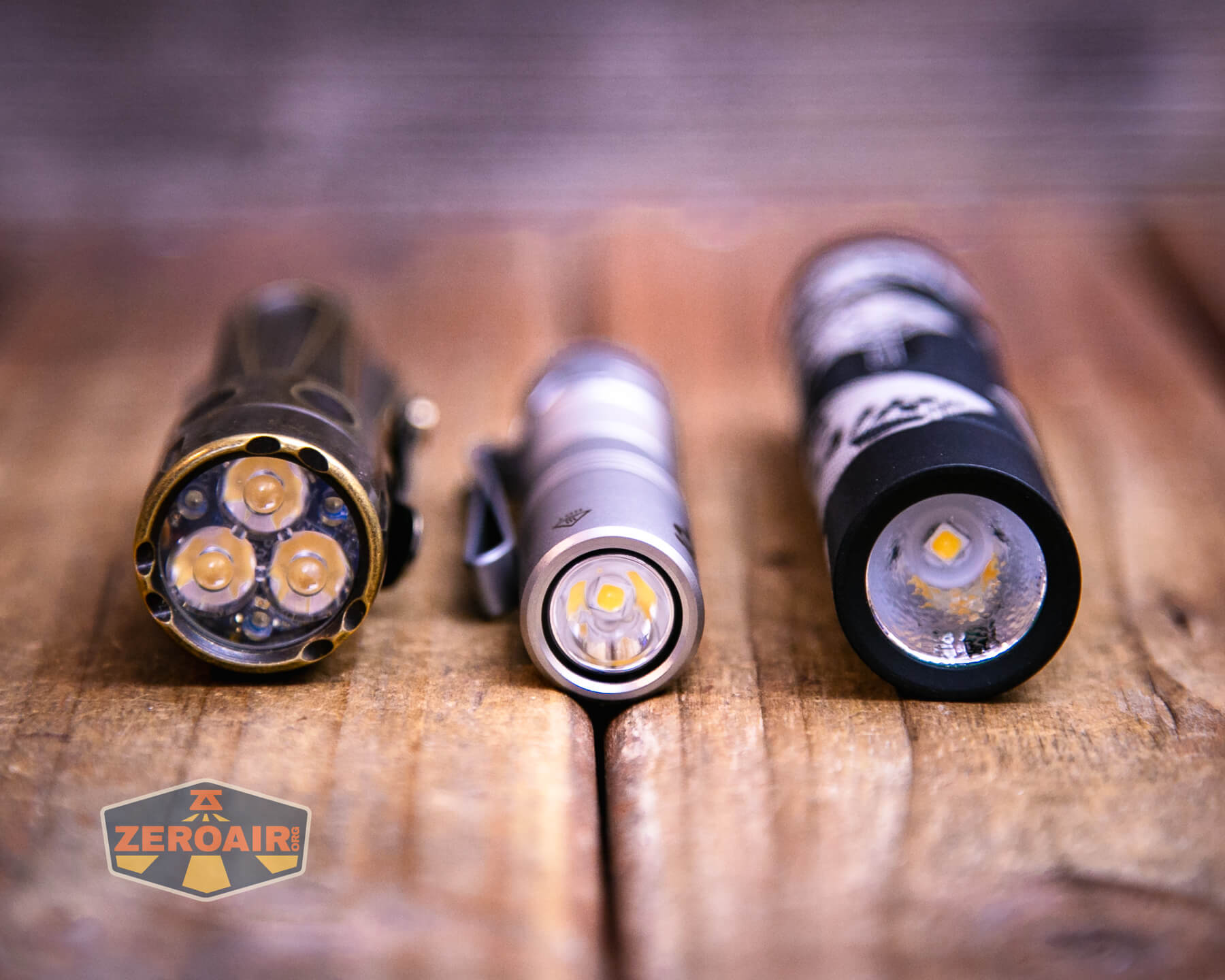 Also above is the light beside a TorchLAB BOSS 35, an 18350 light. I reviewed the aluminum version of that light in both 35 and 70 formats. I also reviewed that specific edition, the “Oveready BOSS FT Collector Vintage Brass” 35. I love it!