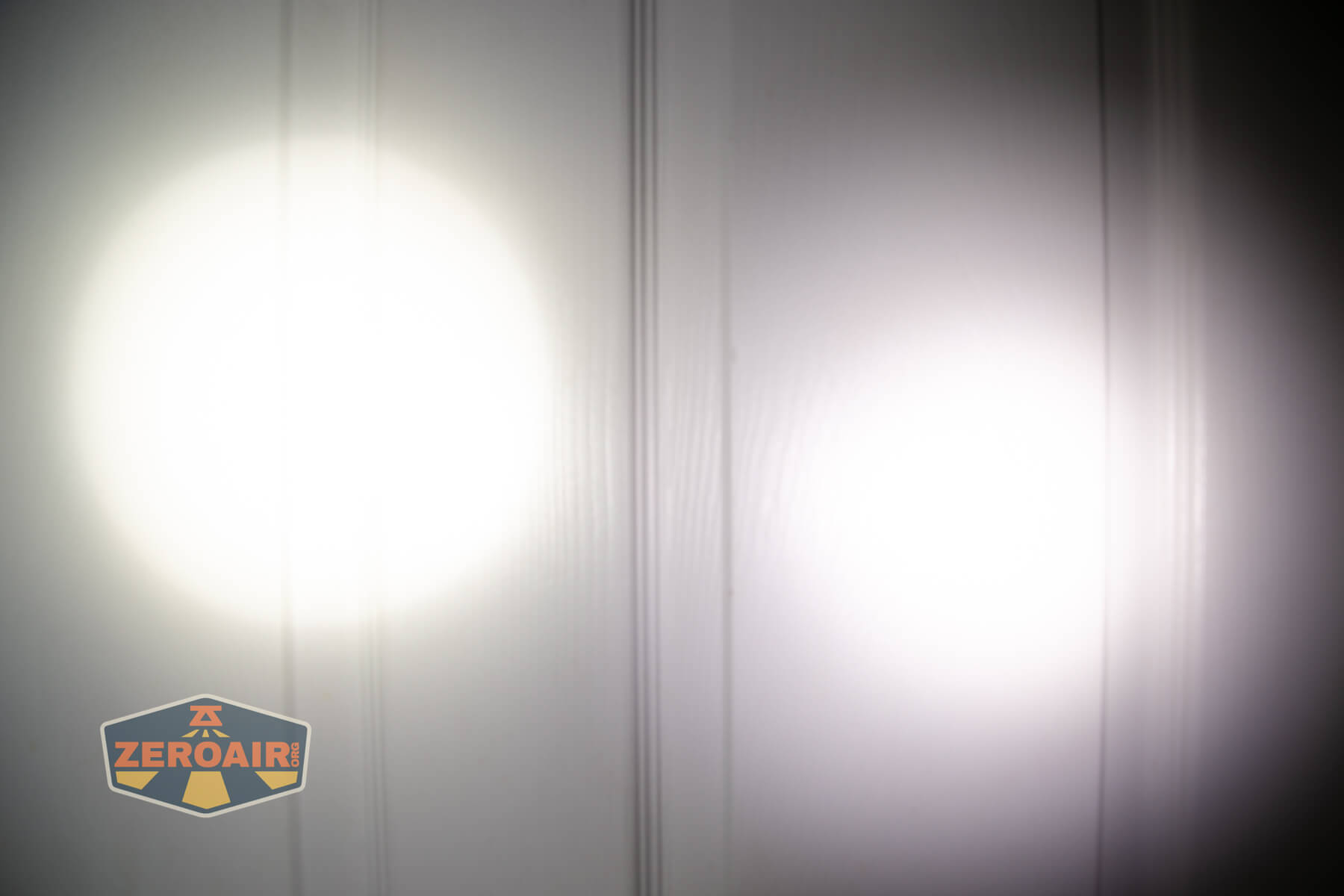 I keep the test flashlight on the left and the BLF-348 reference flashlight on the right. These photos are taken around 18 inches from the door.