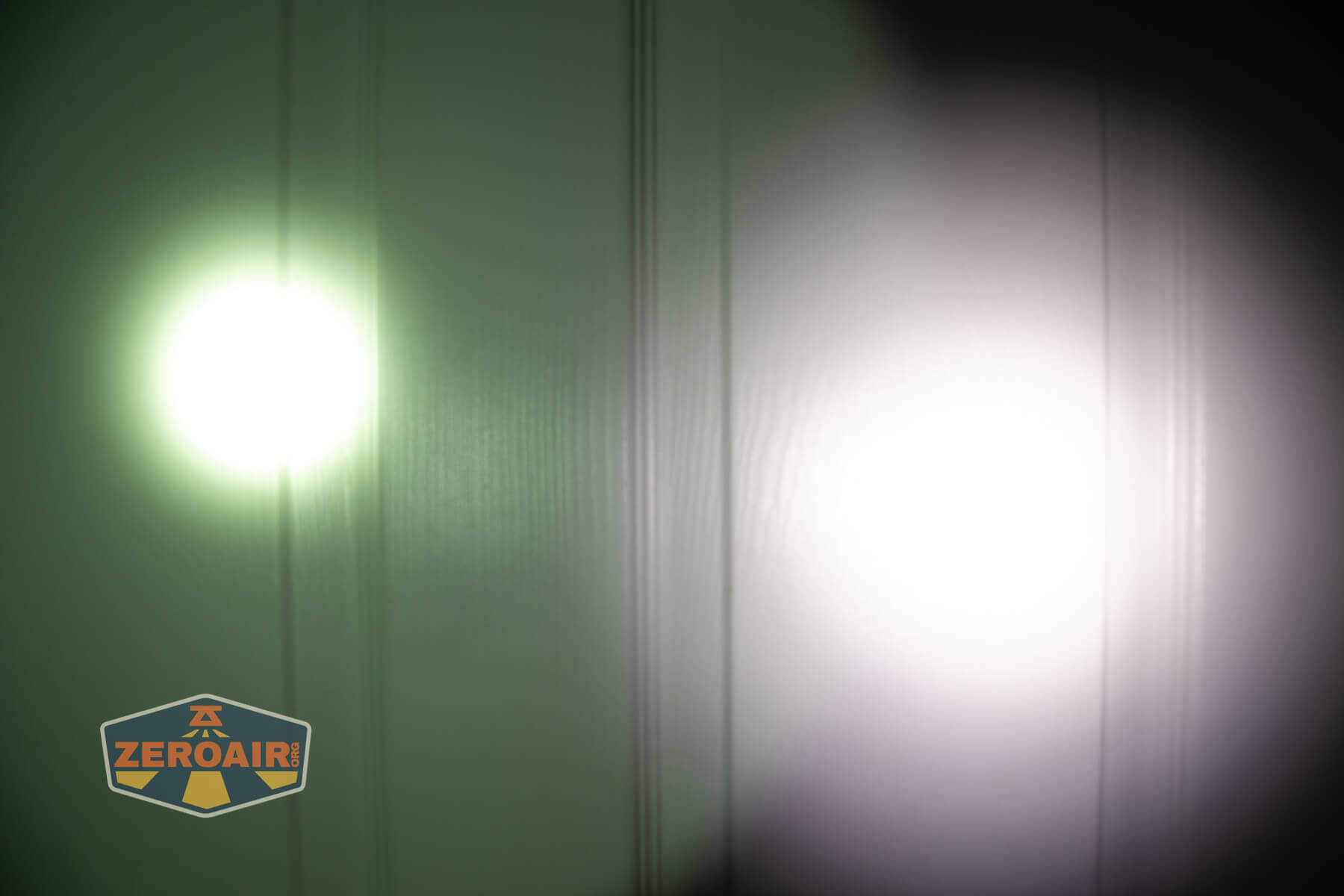 I keep the test flashlight on the left and the BLF-348 reference flashlight on the right. These photos are taken around 18 inches from the door.
