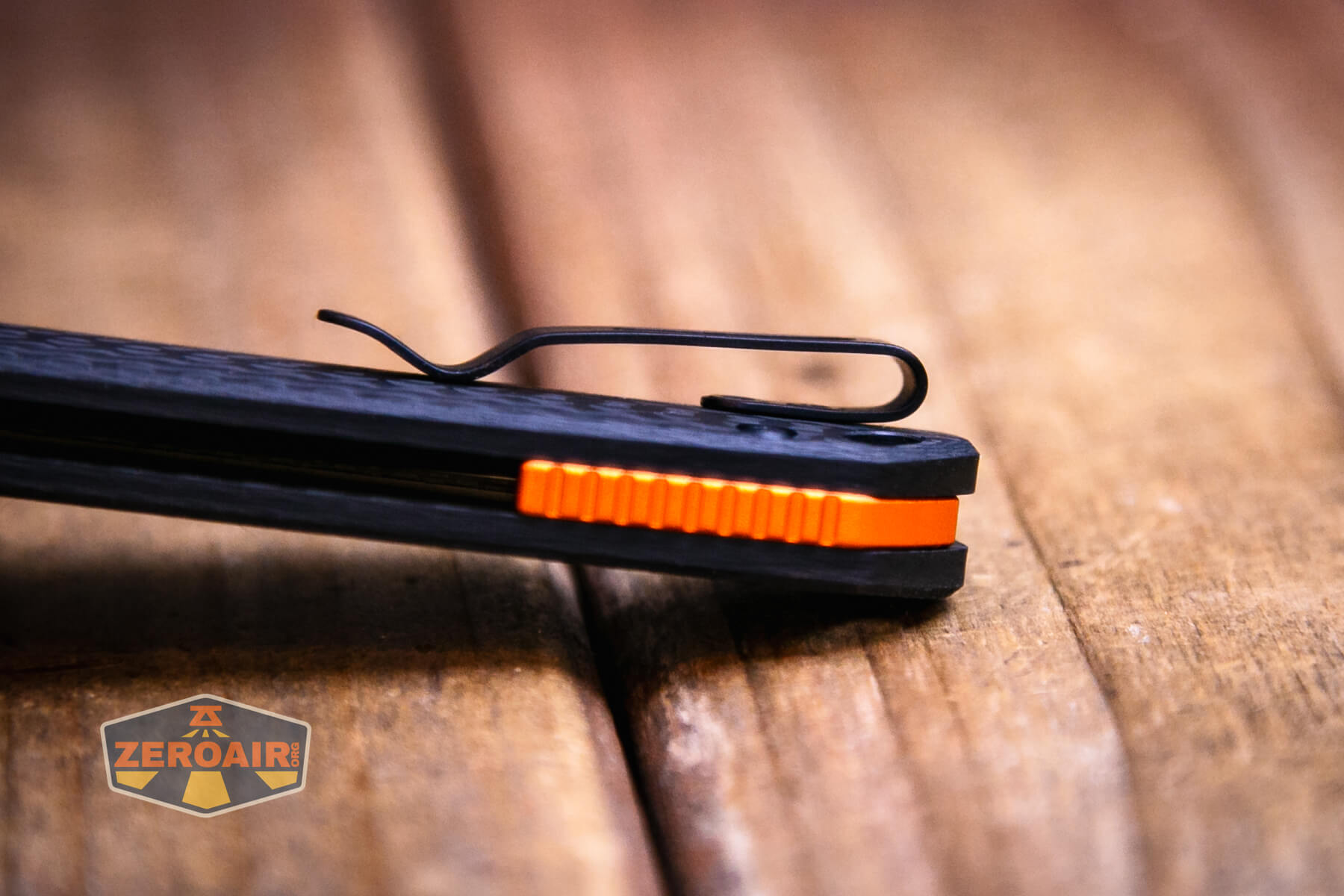 Here’s one thing I don’t love about the Mini Psyop – the pocket clip rests atop the handle and is not nestled into a specific cutout. That probably has to do with these handles being carbon fiber, but I do not know that. I do know that I like the screwed-in area of a clip to sit flush with the scales. This is not a big or functional difference, though.