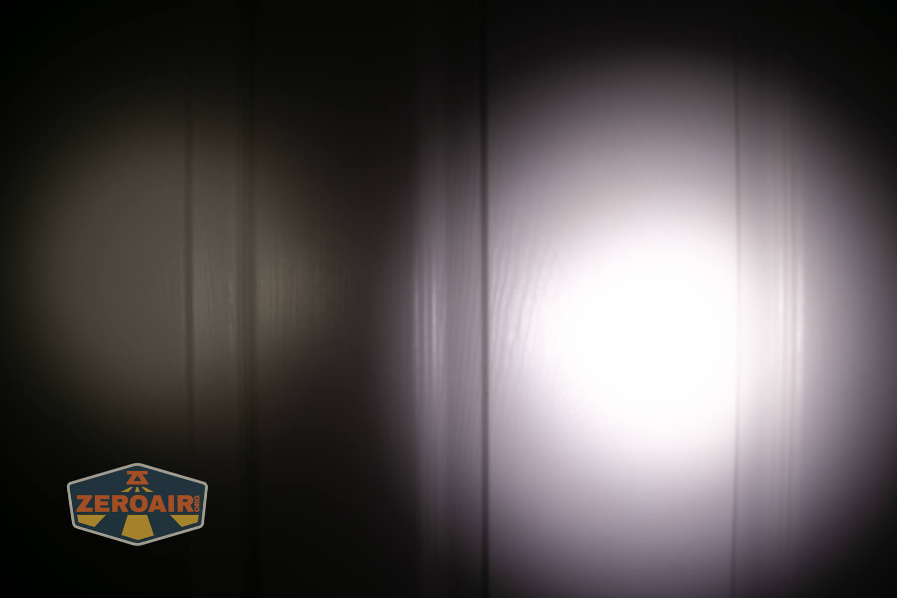 I keep the test flashlight on the left and the BLF-348 reference flashlight on the right. These photos are taken around 18 inches from the door.