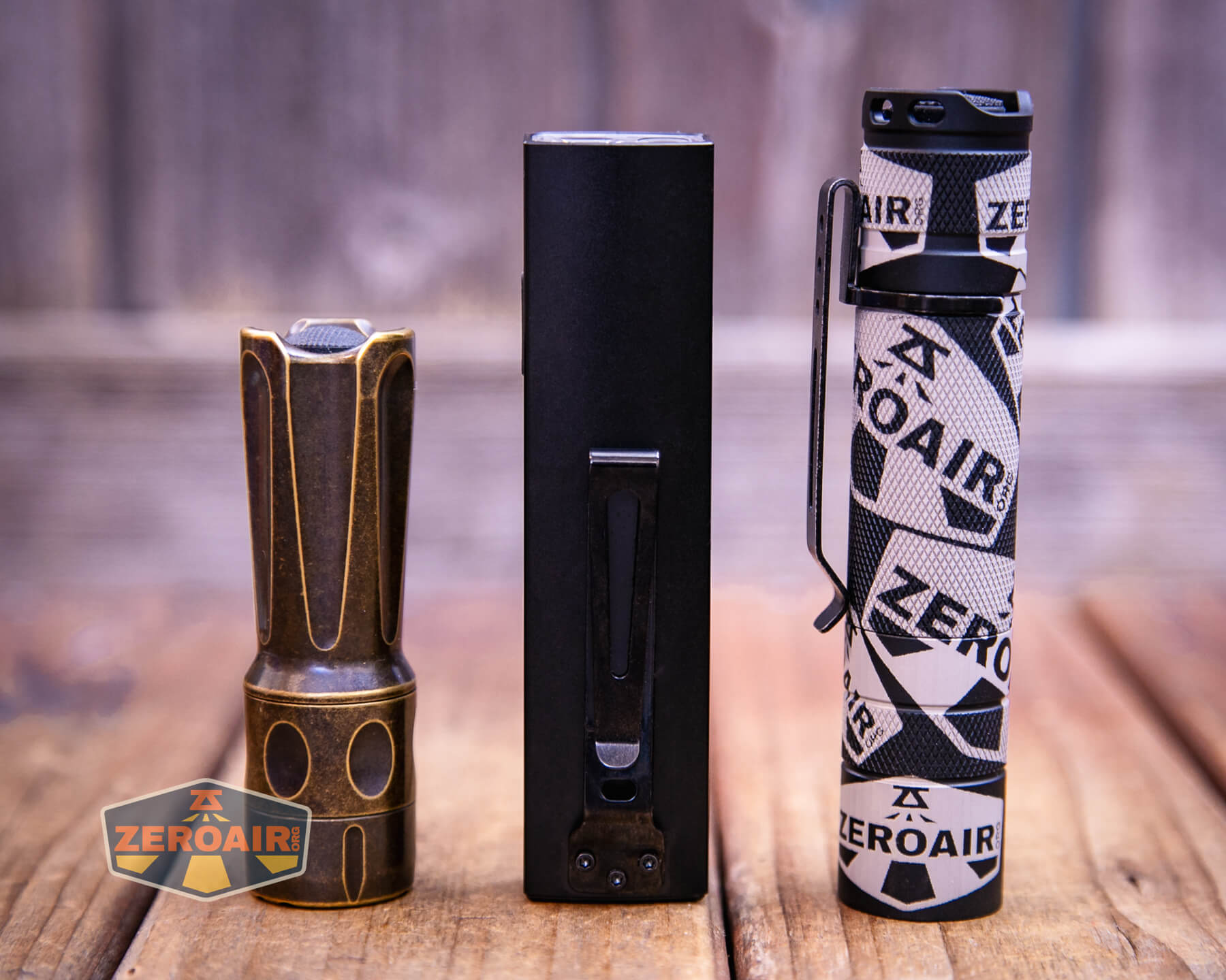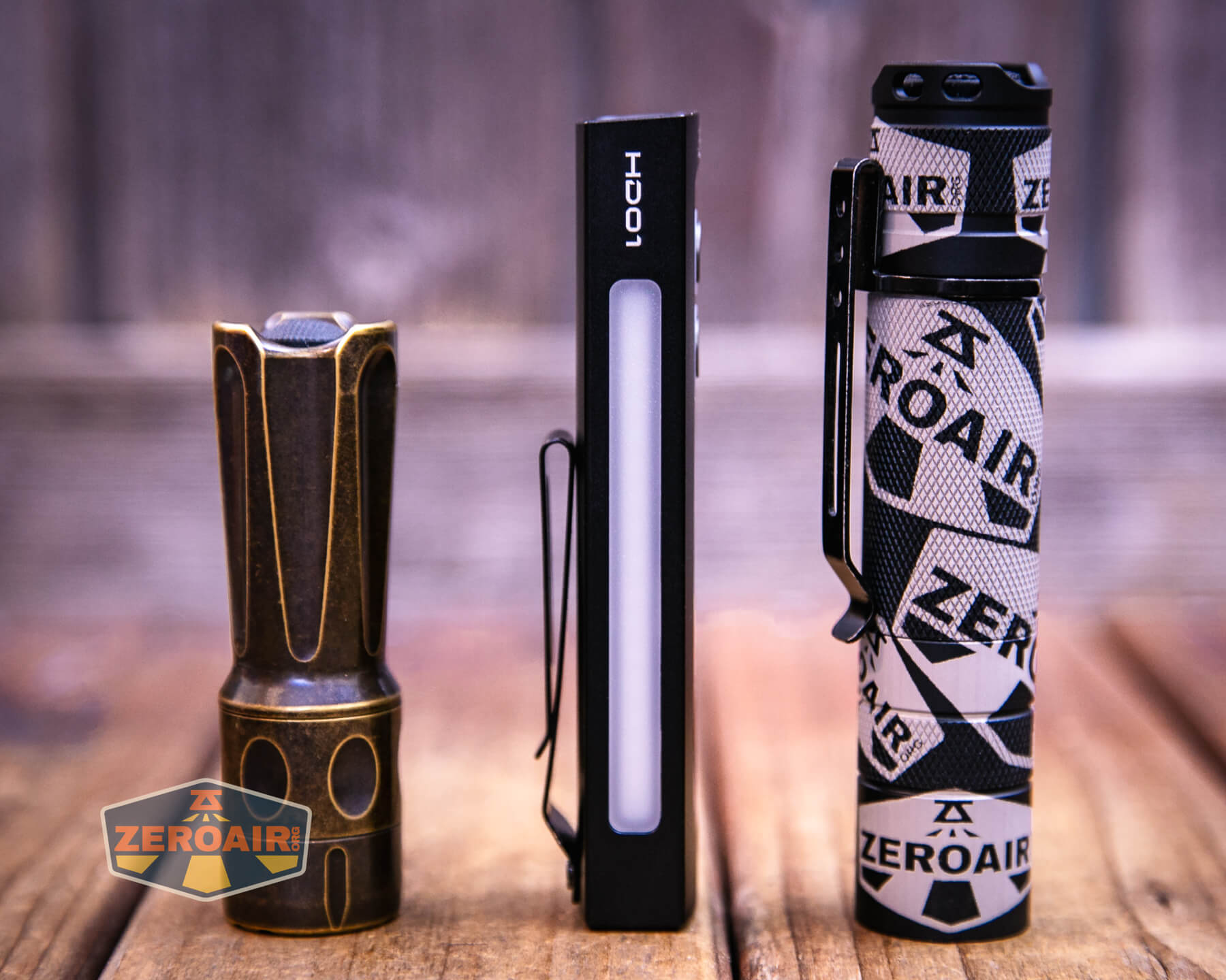 Also above is the light beside a TorchLAB BOSS 35, an 18350 light. I reviewed the aluminum version of that light in both 35 and 70 formats. I also reviewed that specific edition, the “Oveready BOSS FT Collector Vintage Brass” 35. I love it!