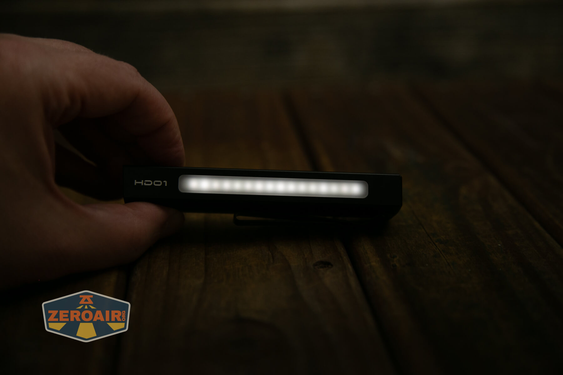 Build quality is good, and the light feels solid. One (not) build quality aspect of the HD01 is the bezel – it’s not flat. You can see it best below. The light won’t headstand (or not well, anyway.) But that’s a design thing, not a build quality thing.