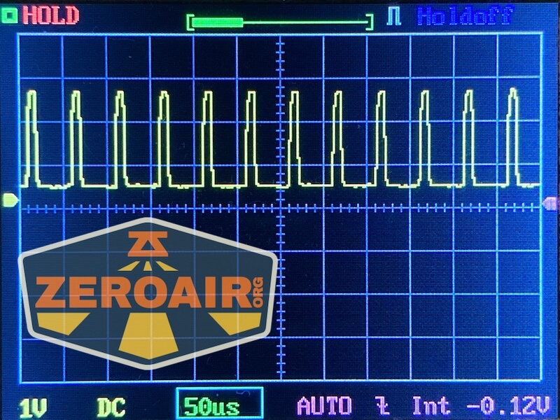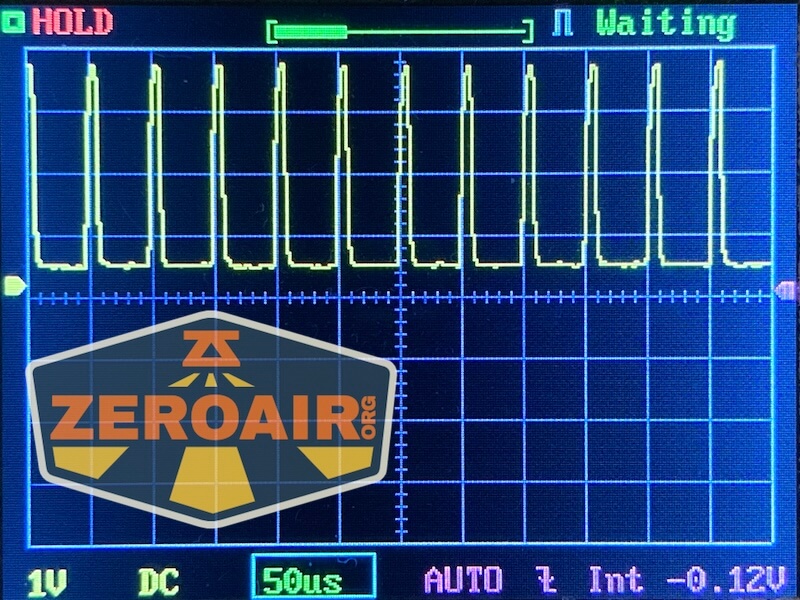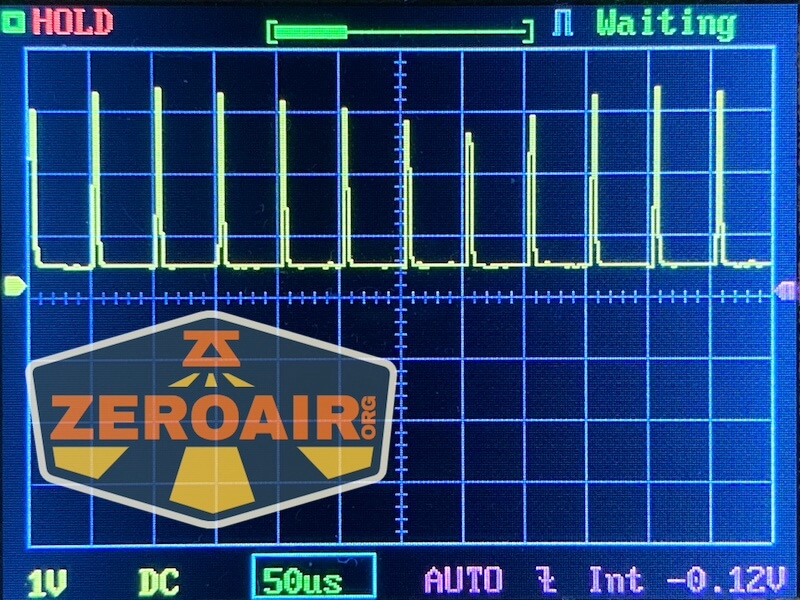 Here you can see a “baseline” – a chart with almost no light hitting the sensor. Then there’s the Ultrafire WF-602C flashlight, which has some of the worst PWM I’ve seen. It’s so bad that I used a post about it to explain PWM! Here are multiple timescales (10ms, 5ms, 2ms, 1ms, 0.5ms, 0.2ms) to make comparing this “worst” PWM light to the test light easier. That post also explains why I didn’t test the WF-602C at the usual 50us scale.