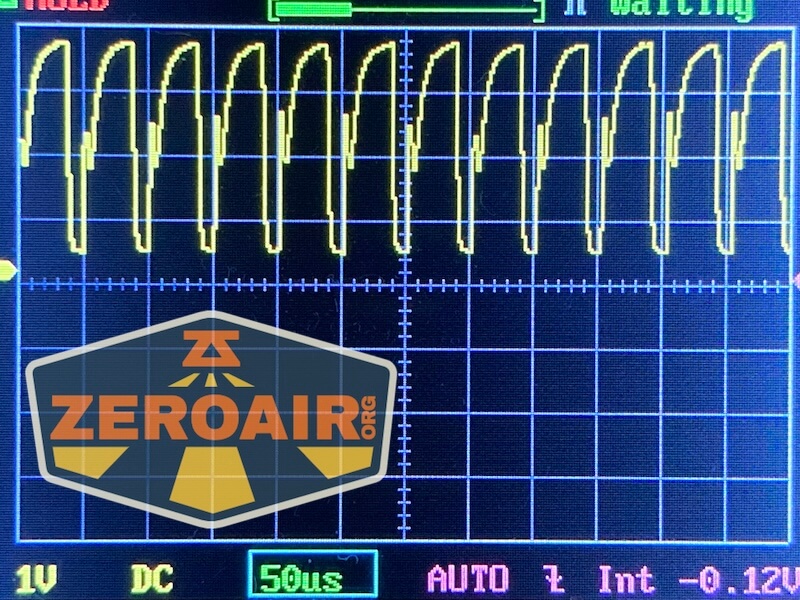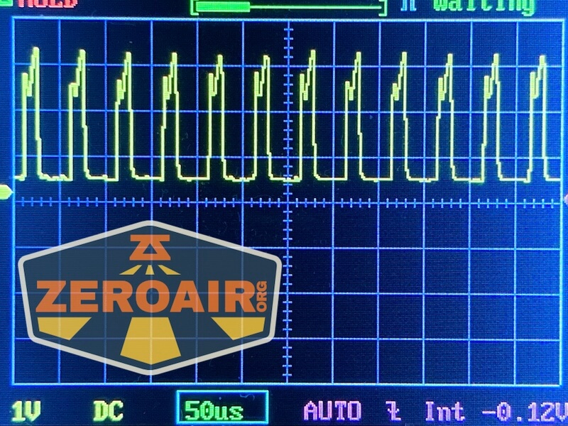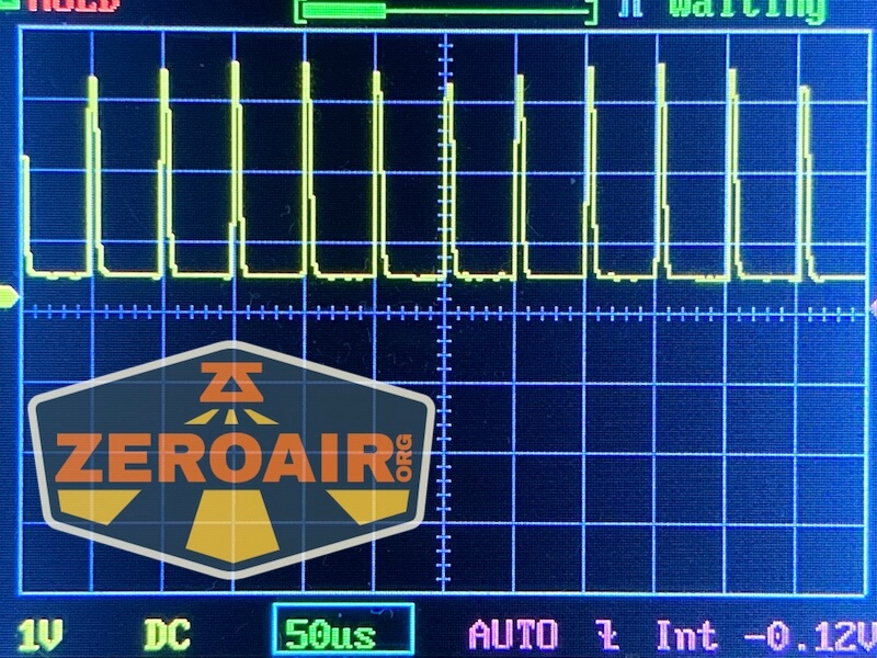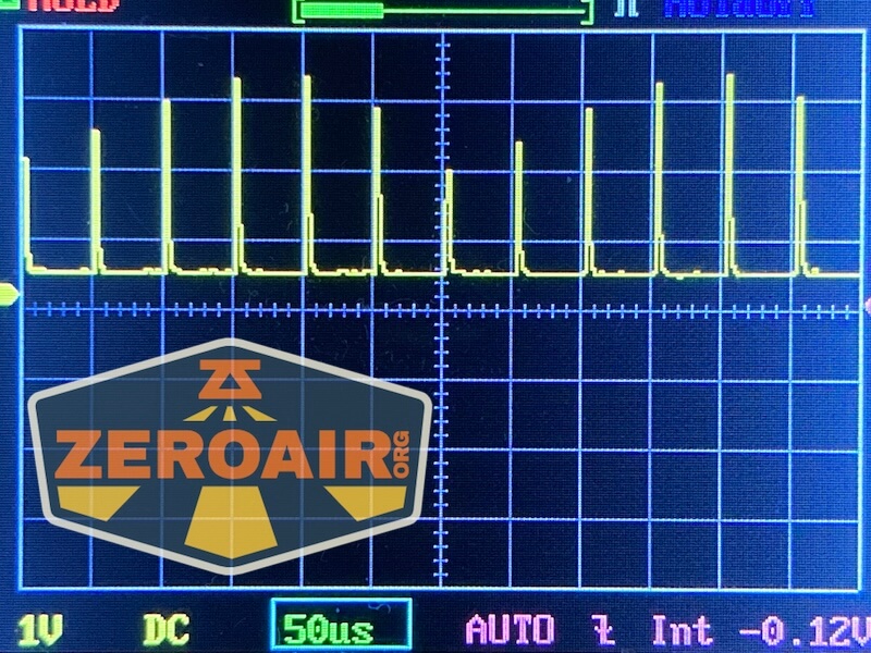 Here you can see a “baseline” – a chart with almost no light hitting the sensor. Then there’s the Ultrafire WF-602C flashlight, which has some of the worst PWM I’ve seen. It’s so bad that I used a post about it to explain PWM! Here are multiple timescales (10ms, 5ms, 2ms, 1ms, 0.5ms, 0.2ms) to make comparing this “worst” PWM light to the test light easier. That post also explains why I didn’t test the WF-602C at the usual 50us scale.
