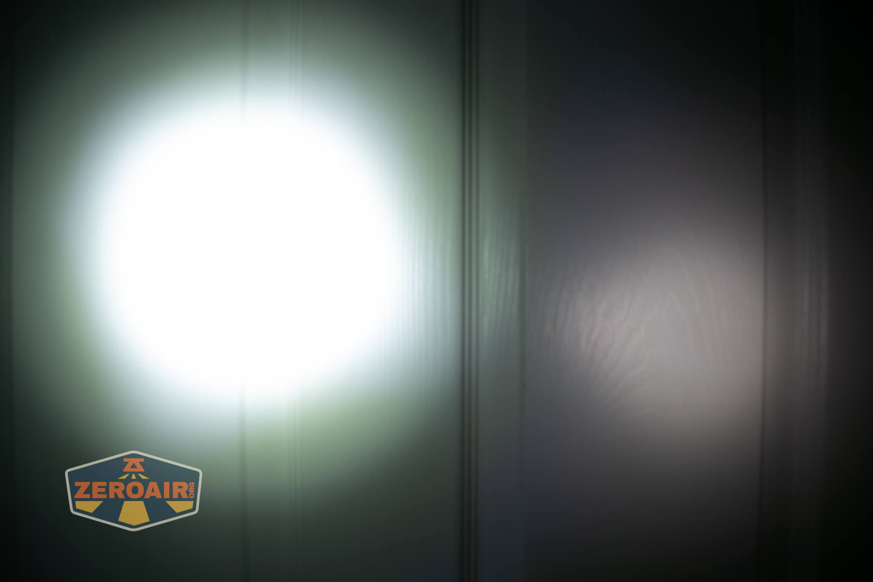 I keep the test flashlight on the left and the BLF-348 reference flashlight on the right. These photos are taken around 18 inches from the door.
