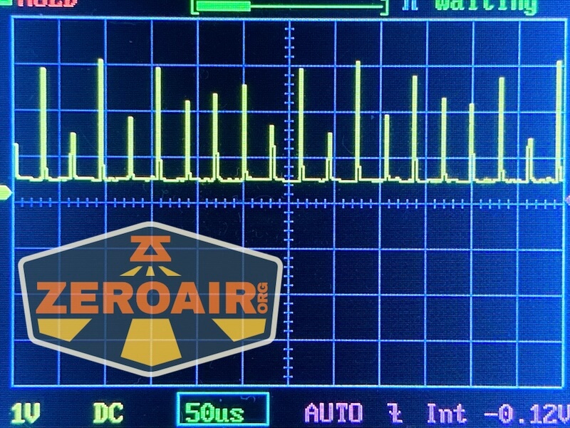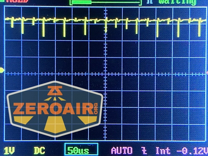 Here you can see a “baseline” – a chart with almost no light hitting the sensor. Then there’s the Ultrafire WF-602C flashlight, which has some of the worst PWM I’ve seen. It’s so bad that I used a post about it to explain PWM! Here are multiple timescales (10ms, 5ms, 2ms, 1ms, 0.5ms, 0.2ms) to make comparing this “worst” PWM light to the test light easier. That post also explains why I didn’t test the WF-602C at the usual 50us scale.