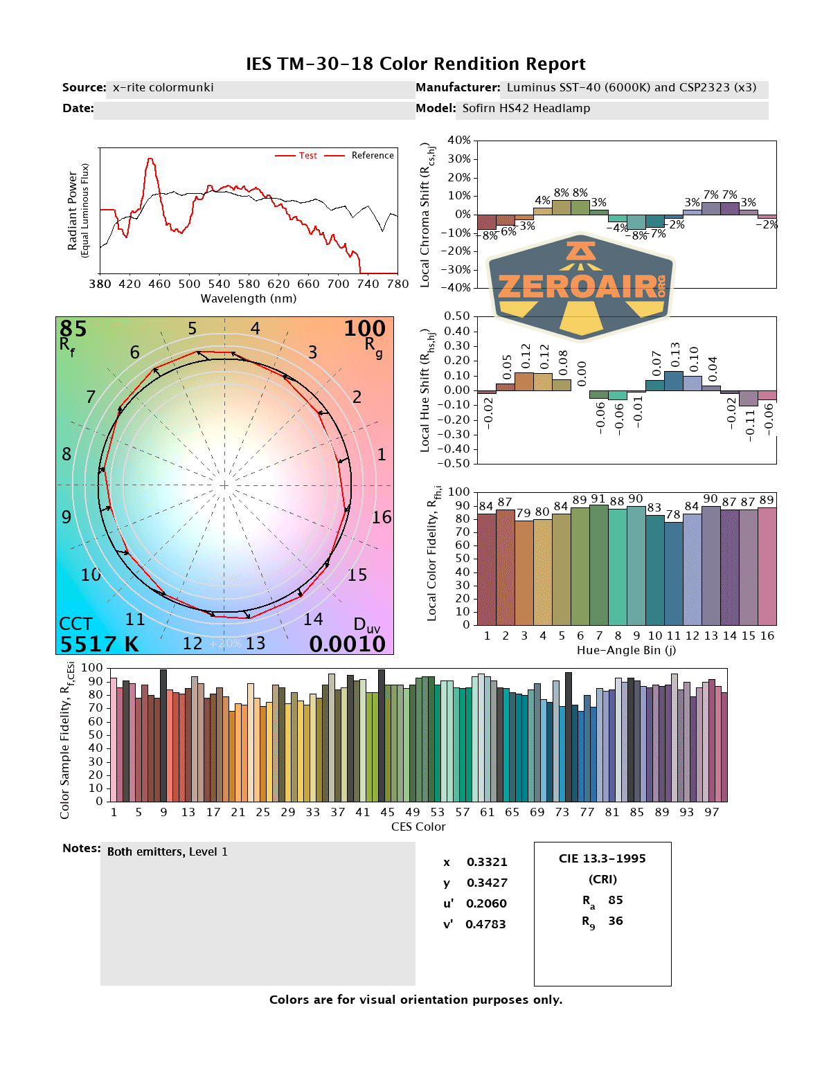 LED Color Report (CRI and CCT)
