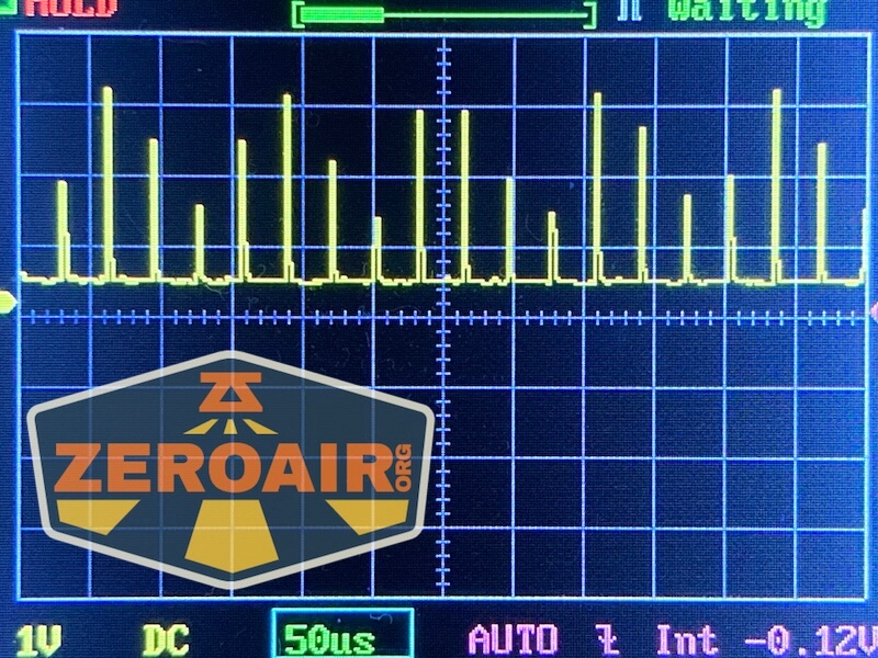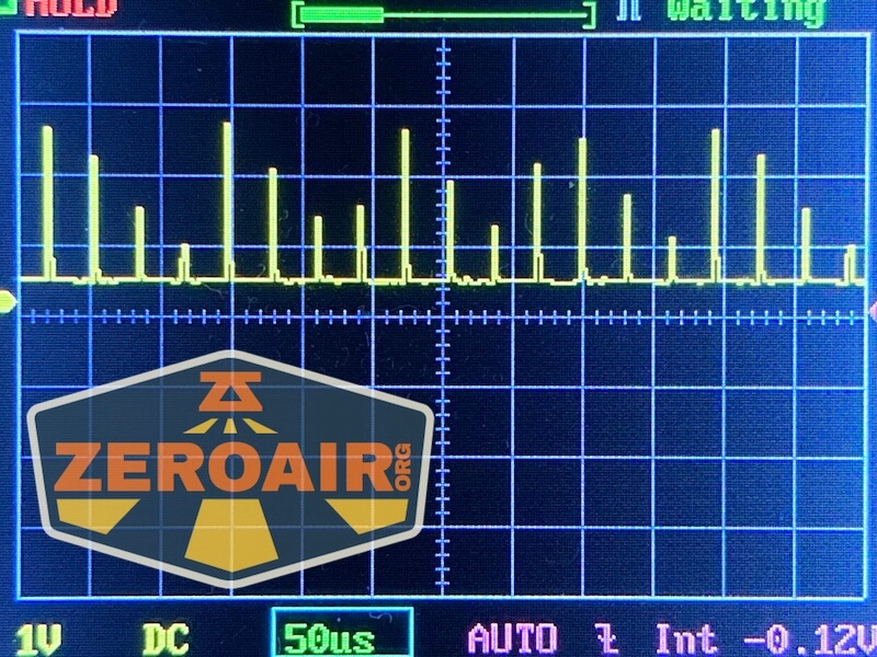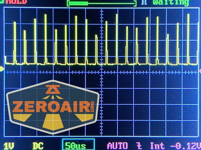 Here you can see a “baseline” – a chart with almost no light hitting the sensor. Then there’s the Ultrafire WF-602C flashlight, which has some of the worst PWM I’ve seen. It’s so bad that I used a post about it to explain PWM! Here are multiple timescales (10ms, 5ms, 2ms, 1ms, 0.5ms, 0.2ms) to make comparing this “worst” PWM light to the test light easier. That post also explains why I didn’t test the WF-602C at the usual 50us scale.