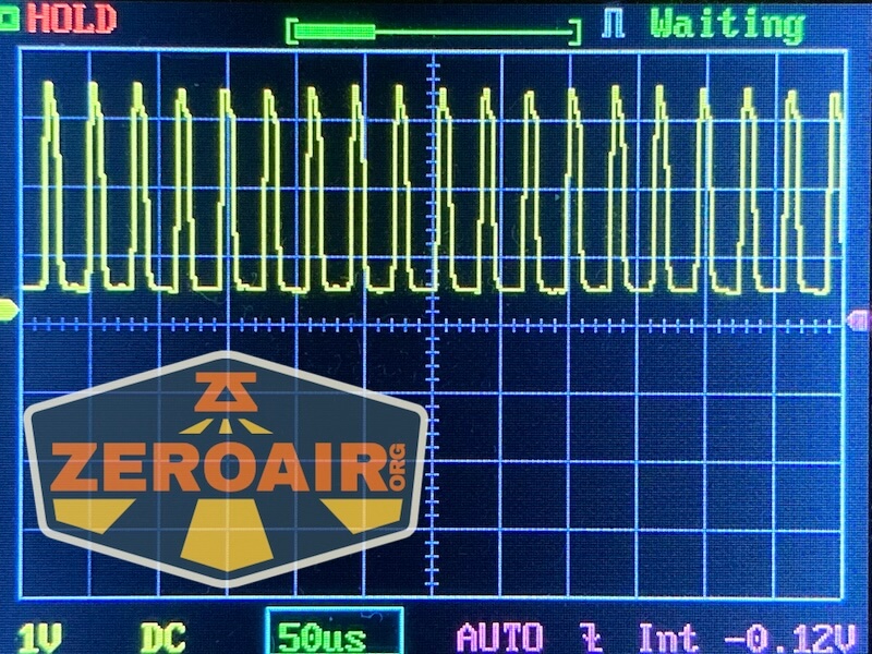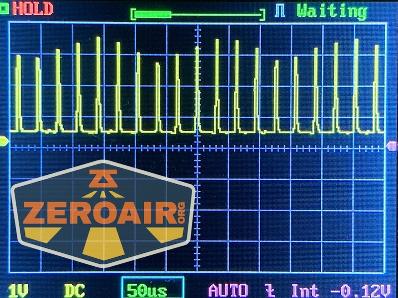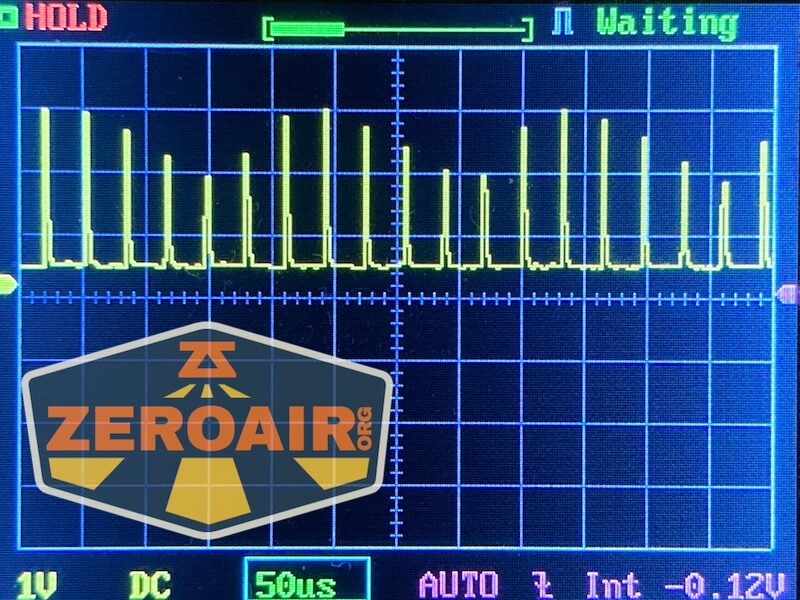 Here you can see a “baseline” – a chart with almost no light hitting the sensor. Then there’s the Ultrafire WF-602C flashlight, which has some of the worst PWM I’ve seen. It’s so bad that I used a post about it to explain PWM! Here are multiple timescales (10ms, 5ms, 2ms, 1ms, 0.5ms, 0.2ms) to make comparing this “worst” PWM light to the test light easier. That post also explains why I didn’t test the WF-602C at the usual 50us scale.