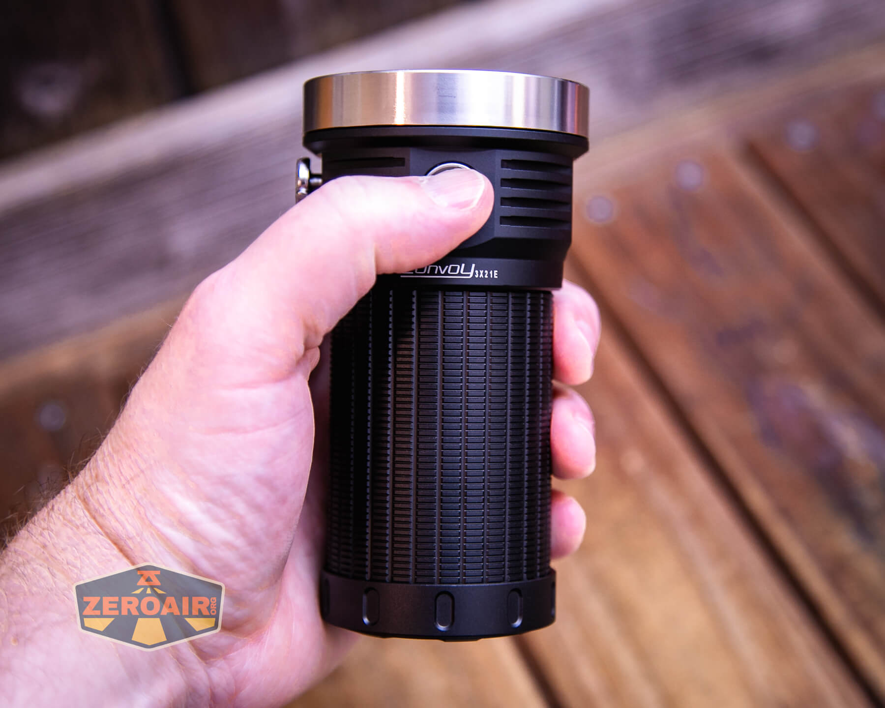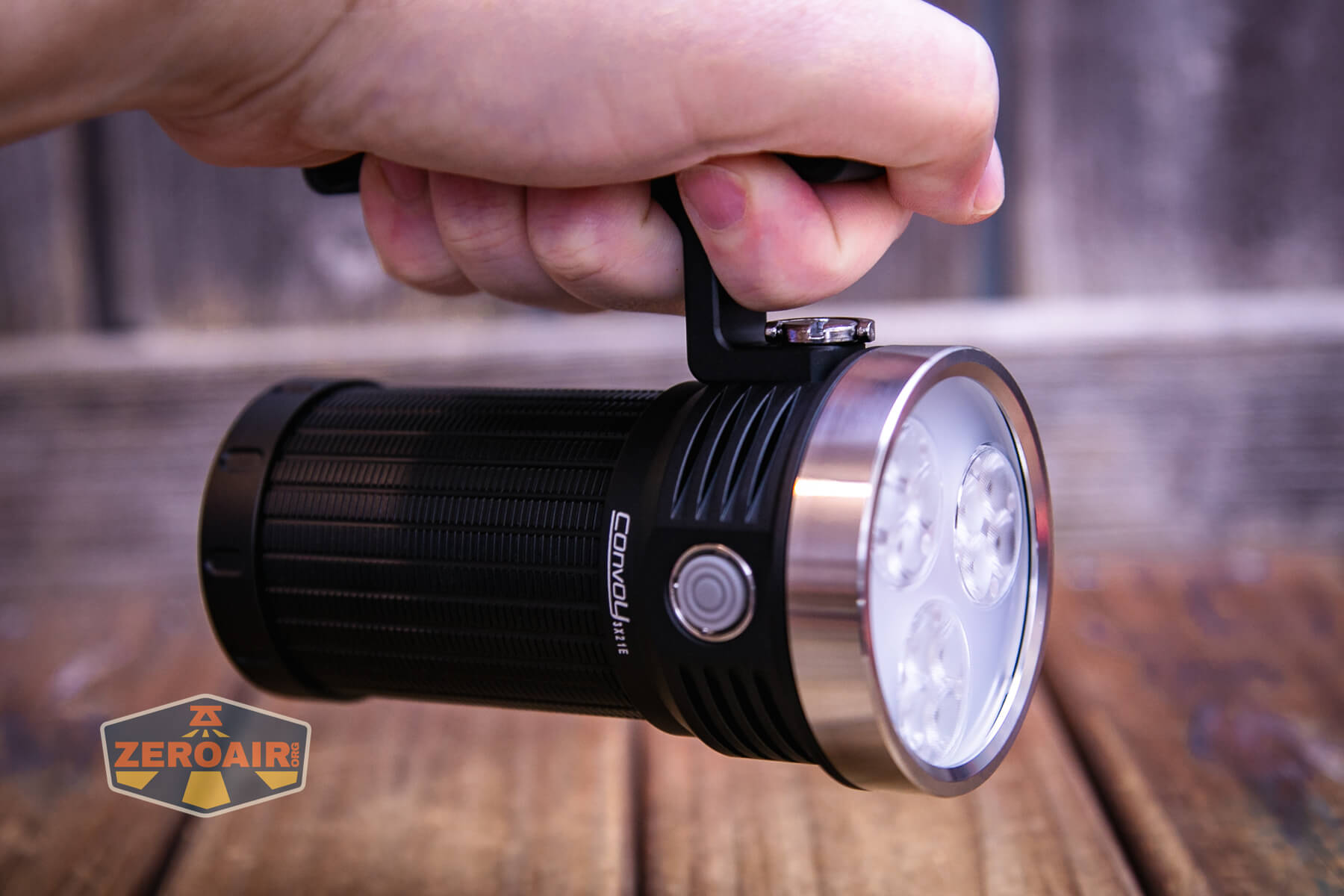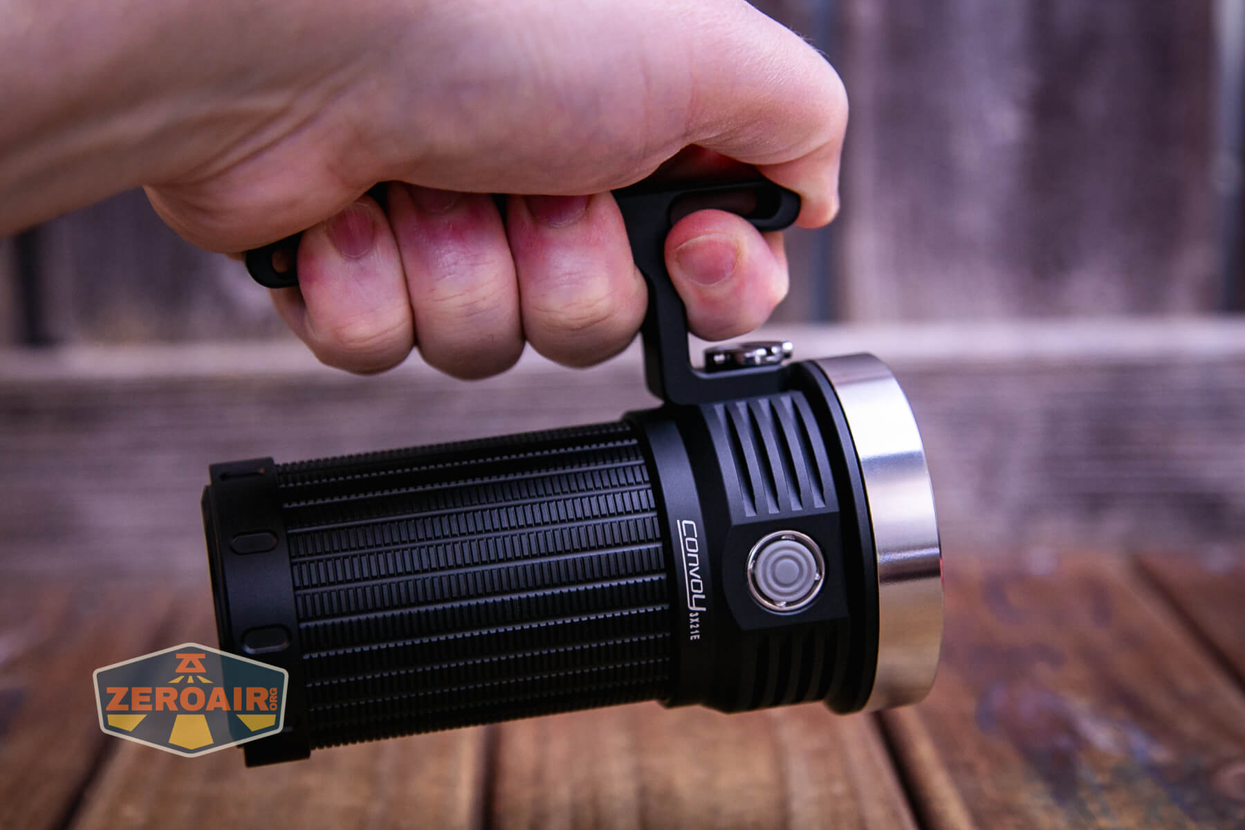 Included with the Convoy 3X21E 21700 flashlight is a very nice handle. This handle attaches near the head. It’s secured with a single screw into a hole that appears to be standard tripod-screw sized.