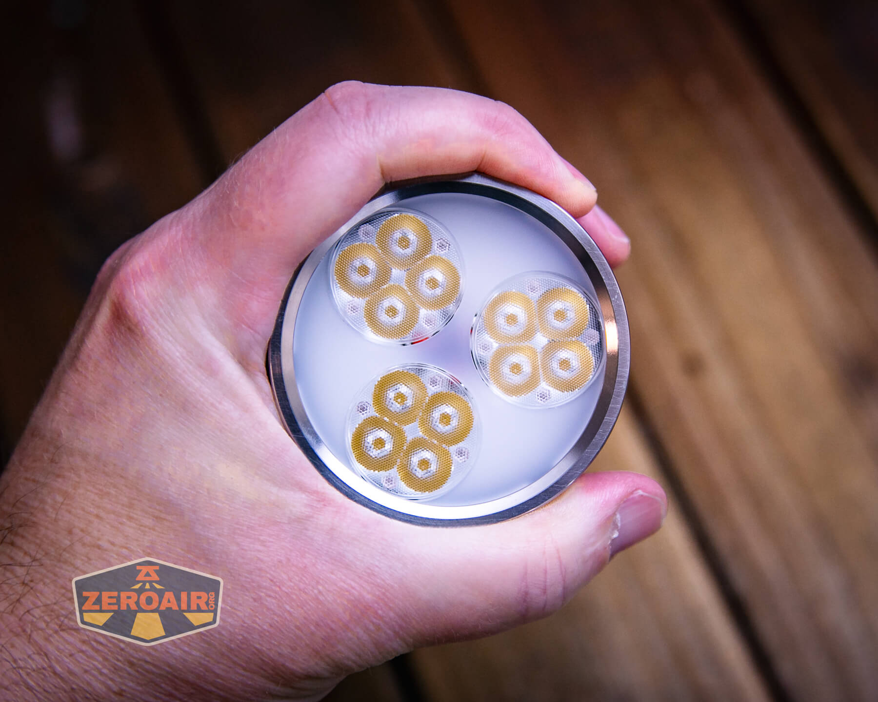 This Convoy 3X21E 21700 flashlight shipped with three quads of Nichia 519a at 4500K. That’s a great setup! I love it; it’s so practical! And quite a high output light still, even at 4500K. If high output is your only goal but you still want 519a, the 5700K would be your best choice.