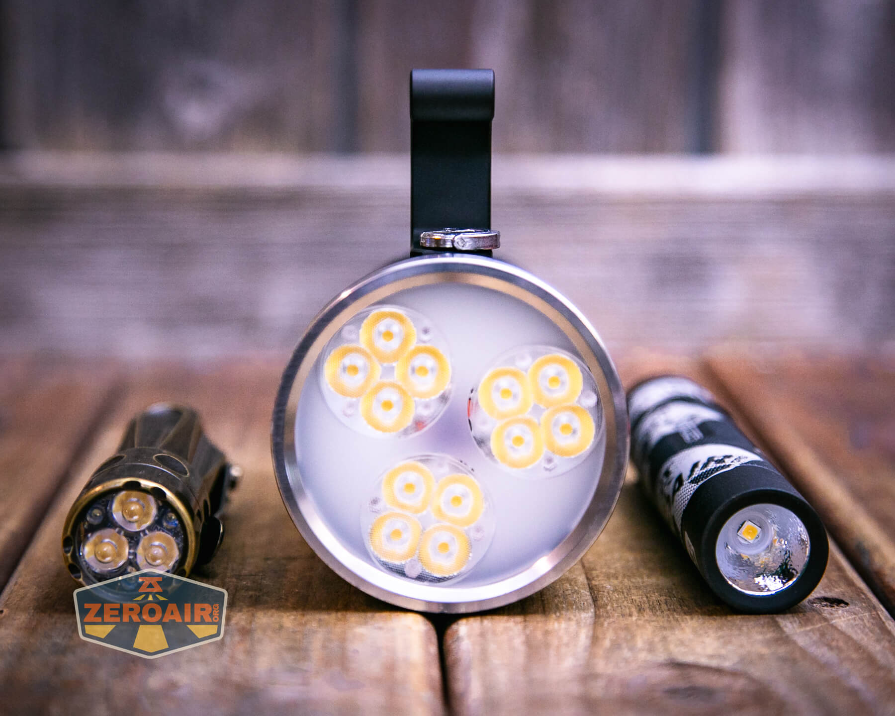 Also above is the light beside a TorchLAB BOSS 35, an 18350 light. I reviewed the aluminum version of that light in both 35 and 70 formats. I also reviewed that specific edition, the “Oveready BOSS FT Collector Vintage Brass” 35. I love it!