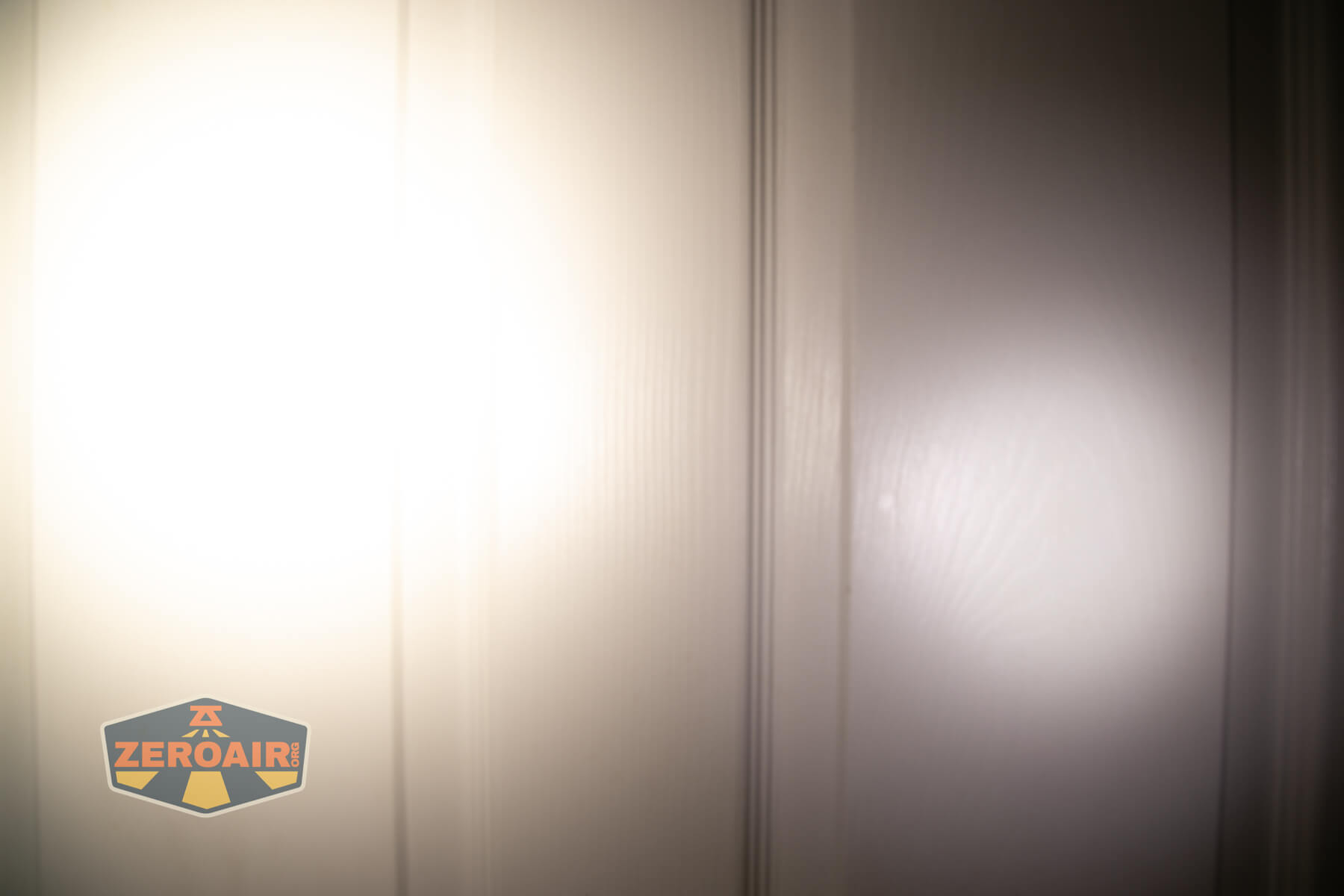 I keep the test flashlight on the left and the BLF-348 reference flashlight on the right. These photos are taken around 18 inches from the door.
