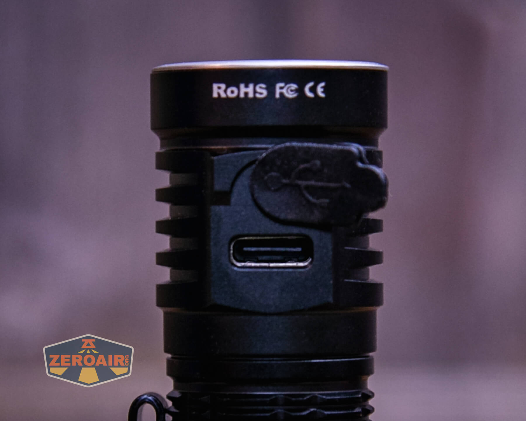 The light also sports onboard charging, via a USB-C port in the head, opposite the switch. This port is protected by a big rubber press-in cover.