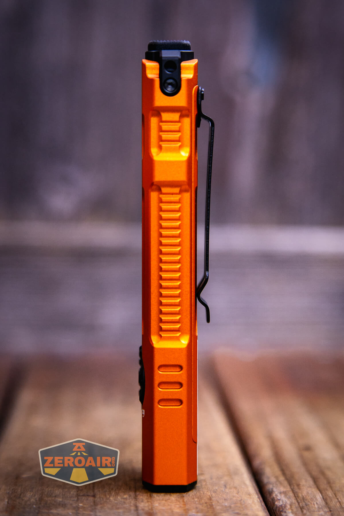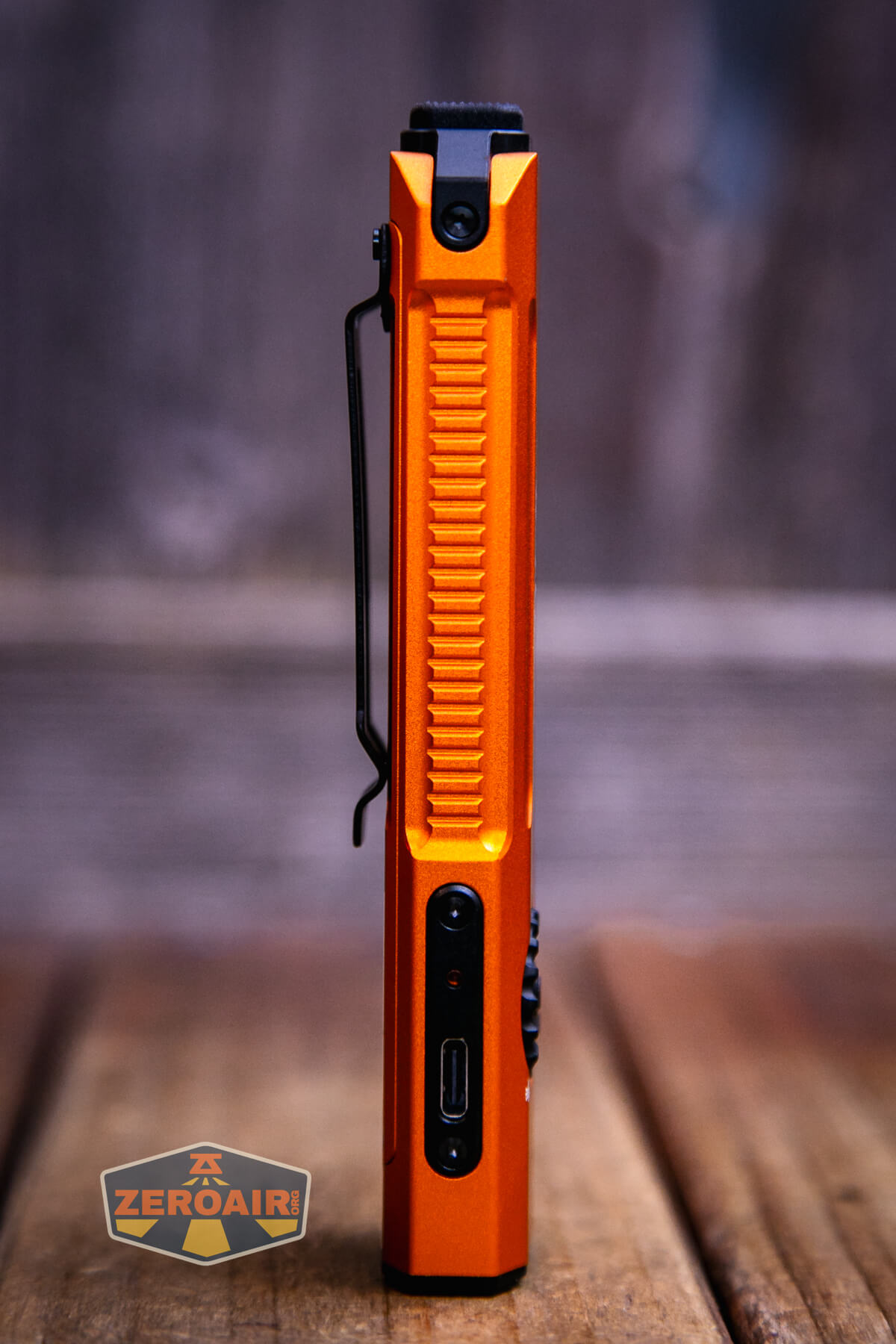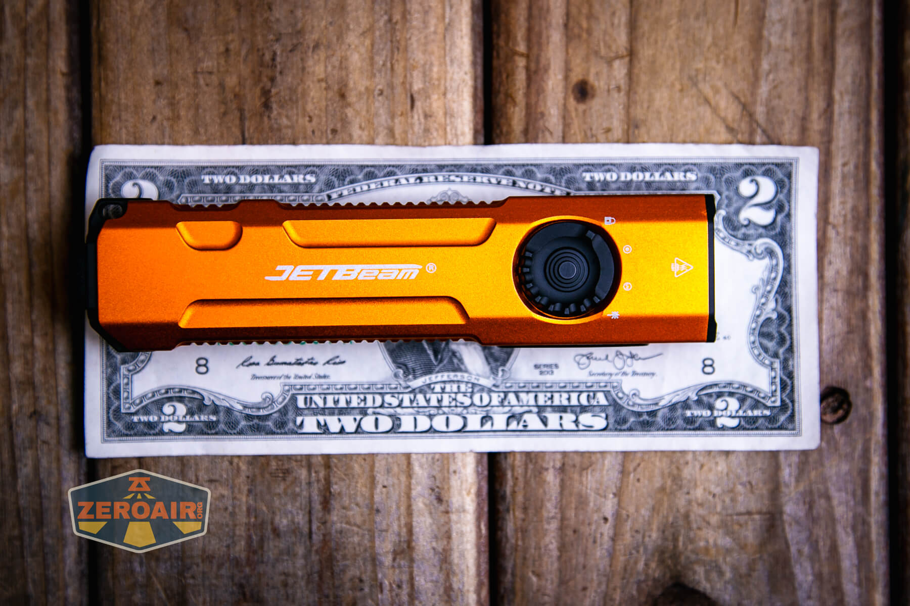 I feel silly gushing about the charging port, but I really do like not having to fool with a charging port cover. Sure, there are plenty of fine charge port covers… But since this one is waterproof and I’m not terribly likely to get a ton of dust in there, this is nice. The color is also great! JETBeam really nailed the orange here (probably better in person than the photos would indicate). This UV version could stand to have 5 white modes just like the non-UV. Lower would be fine. Even a middle mode somewhere would be fine. The tactical switch is something I haven’t seen in a slim/flat light like this before, and it seems well-implemented. So in total, this is a very interesting light that’s definitely worth considering!