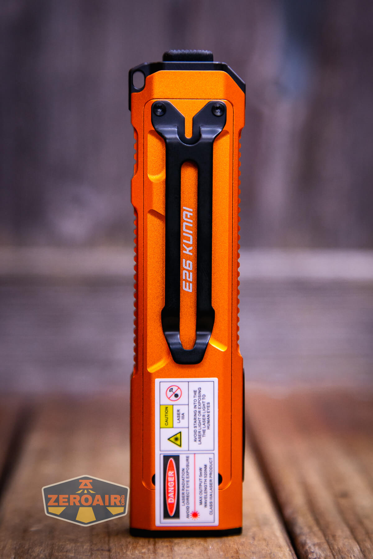 A pocket clip ships already attached to the JETBeam E26-UV Kunai flashlight. The clip uses two TORX screws.
