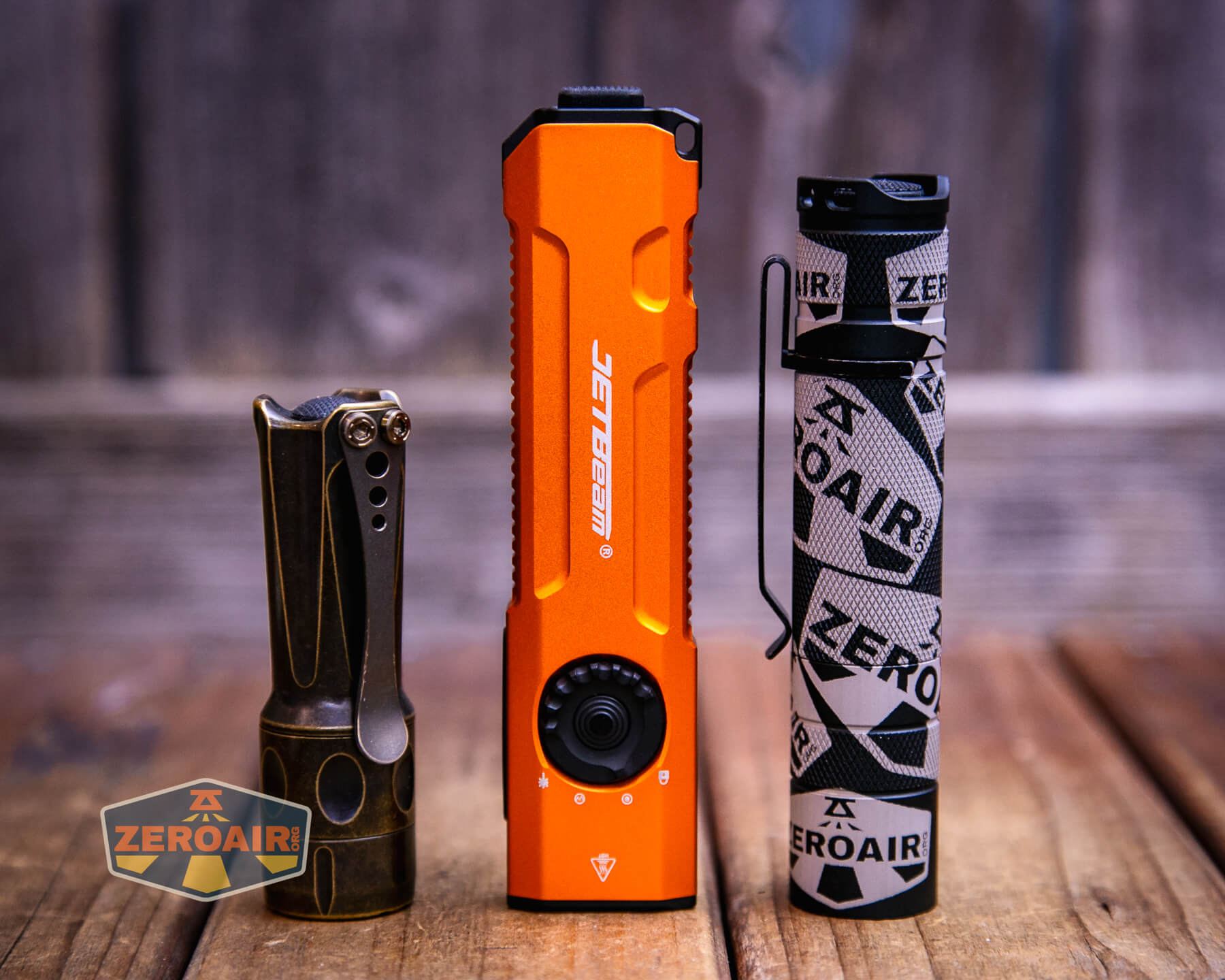 Also above is the light beside a TorchLAB BOSS 35, an 18350 light. I reviewed the aluminum version of that light in both 35 and 70 formats. I also reviewed that specific edition, the “Oveready BOSS FT Collector Vintage Brass” 35. I love it!