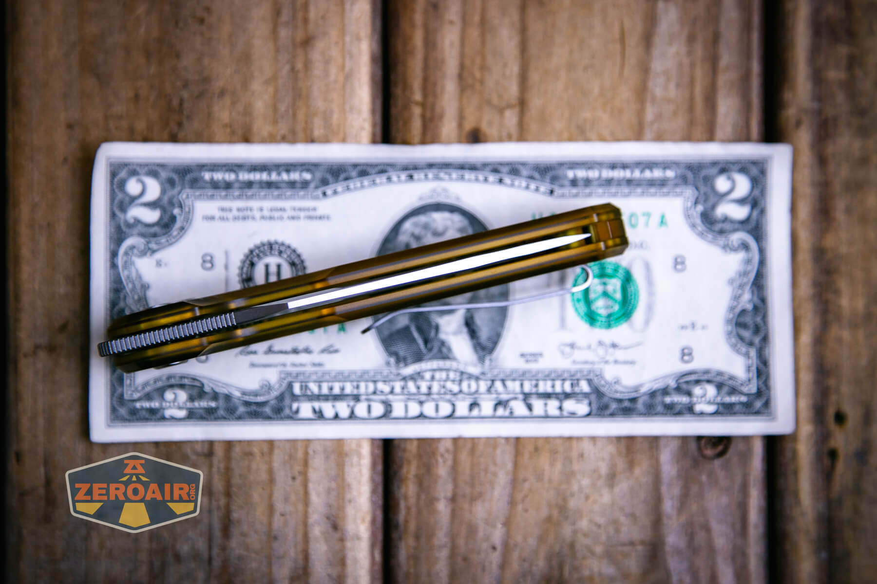 Another feature I’m surprised by is that when the knife is fully open, the thumb flipper tab sits just a bit higher than the Ultem scales. That might be intentional and could protect the Ultem.
