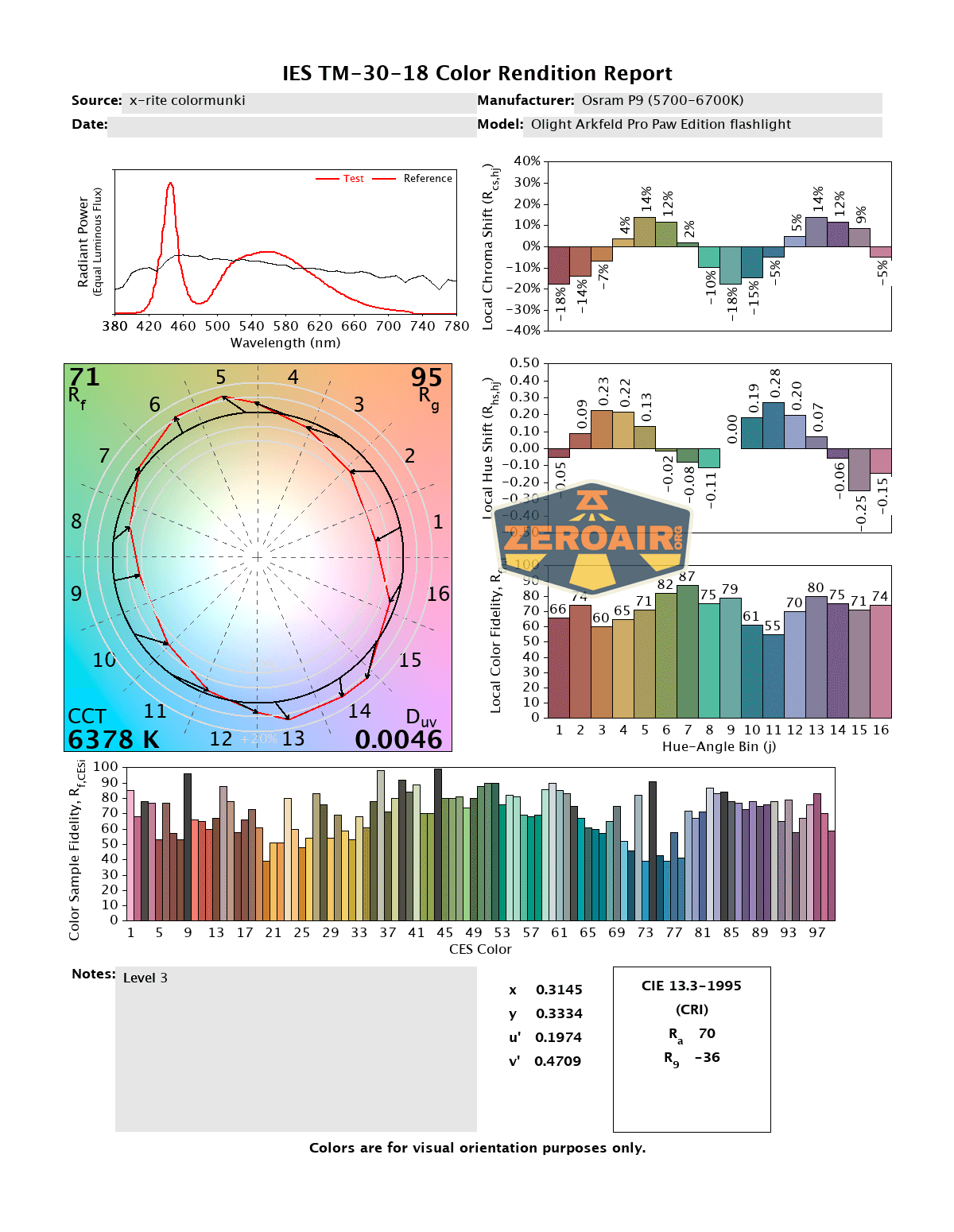 LED Color Report (CRI and CCT)