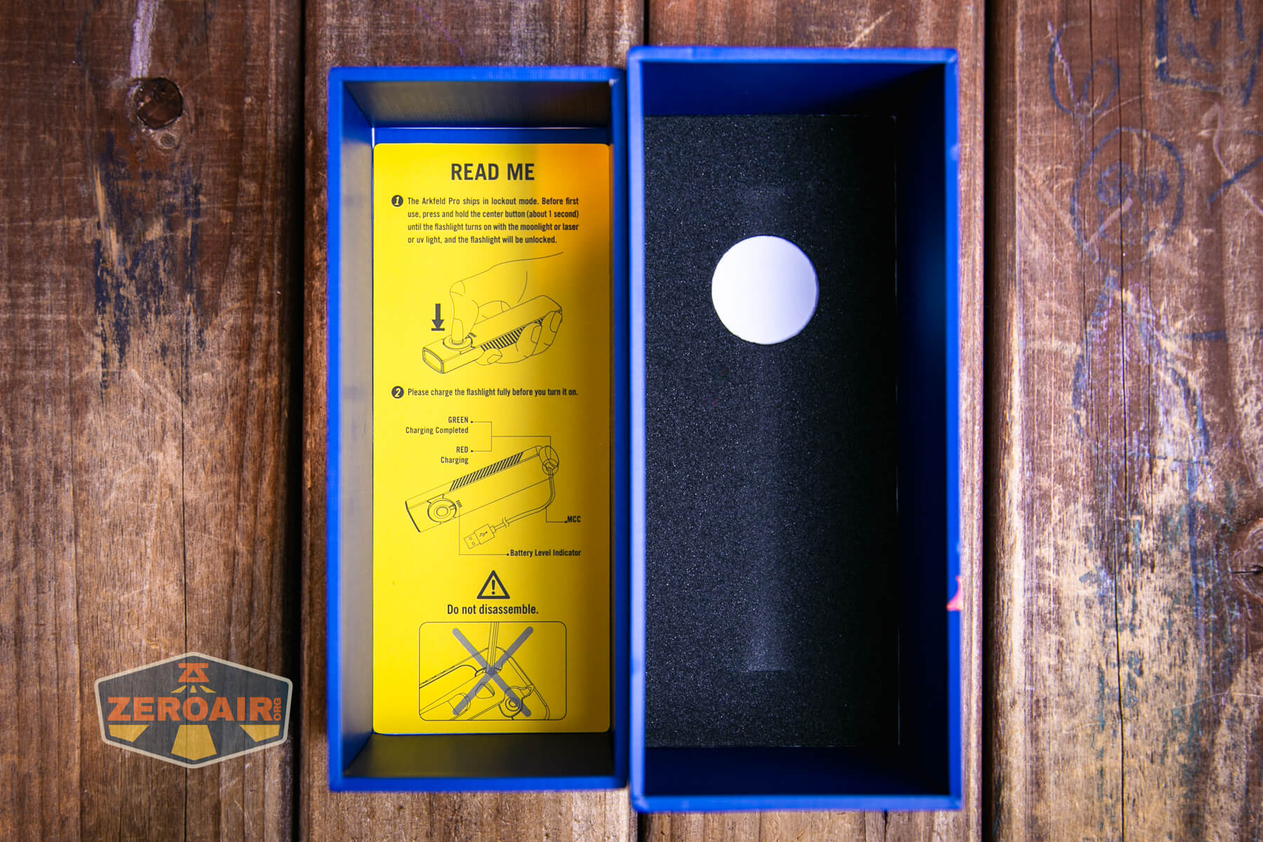 Olight states this as a “built-in 1500mAh Lithium Polymer Battery” and that’s perfectly logical. I was unable to gain any access to the LiPO but I did run a couple of output tests. There is a battery indicator below the switch and it does indicate when the voltage is low. The light finally shuts off, too.