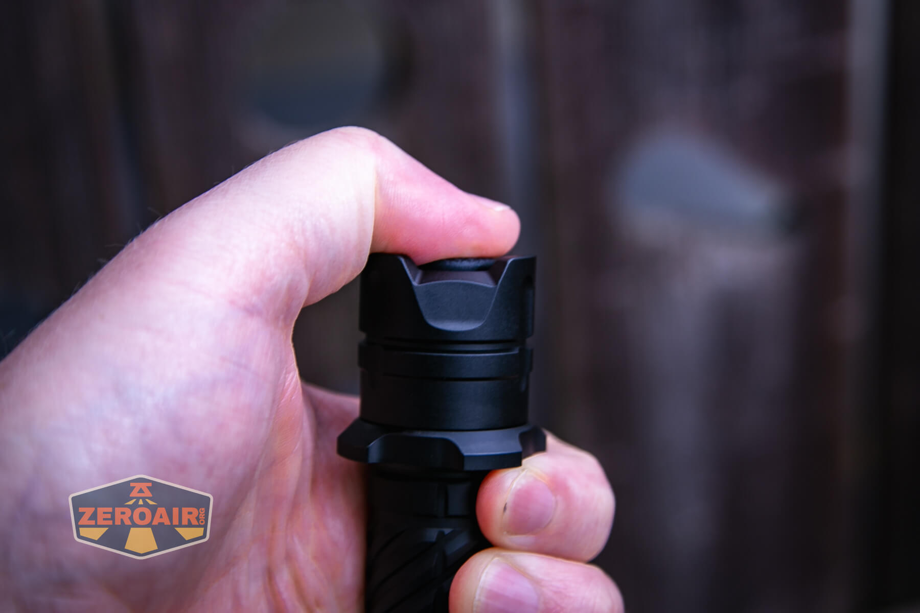 Acebeam has used a dual-switch interface on the P20 flashlight. The tail switch is a mechanical clicky.
