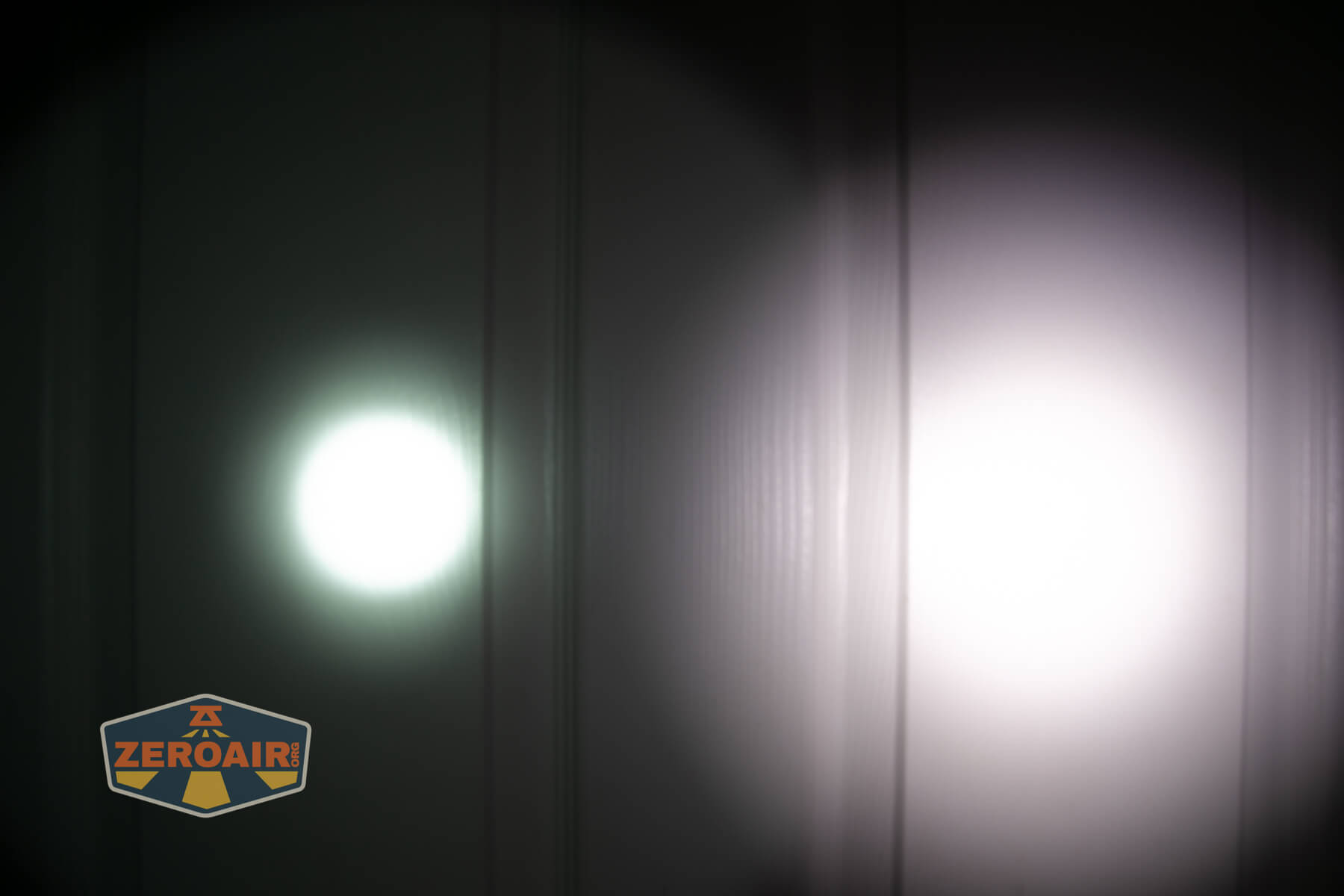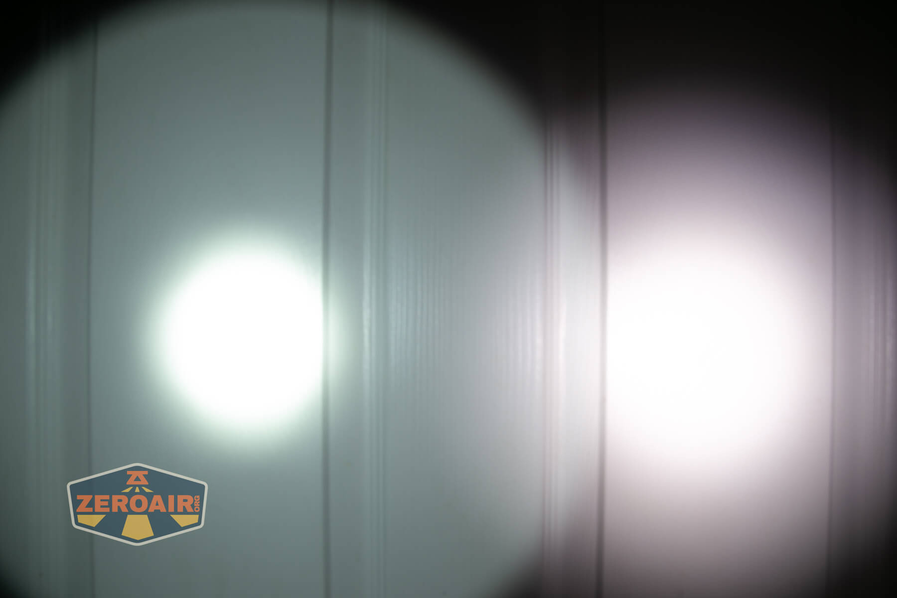 I keep the test flashlight on the left and the BLF-348 reference flashlight on the right. These photos are taken around 18 inches from the door.