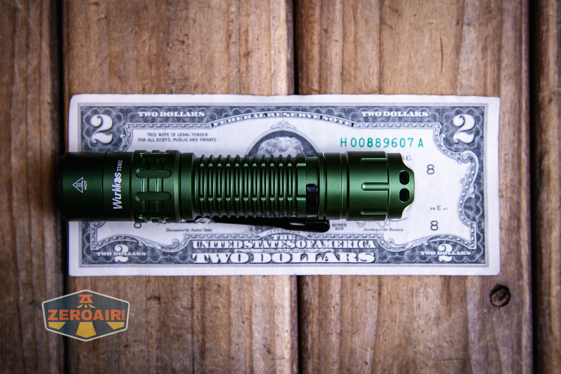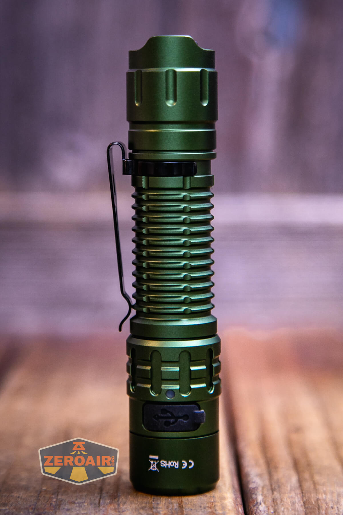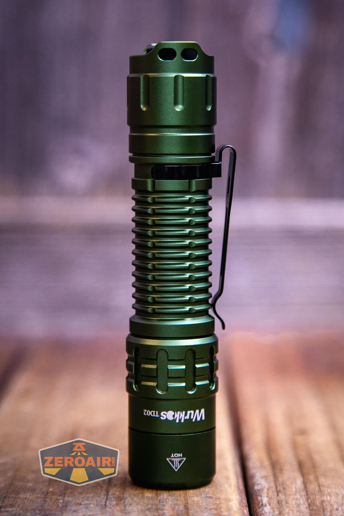 The Wurkkos TD02 green flashlight is an inexpensive (loosely) tactical light with a single emitter and TIR. It runs one 18650 and has built-in USB-C charging.