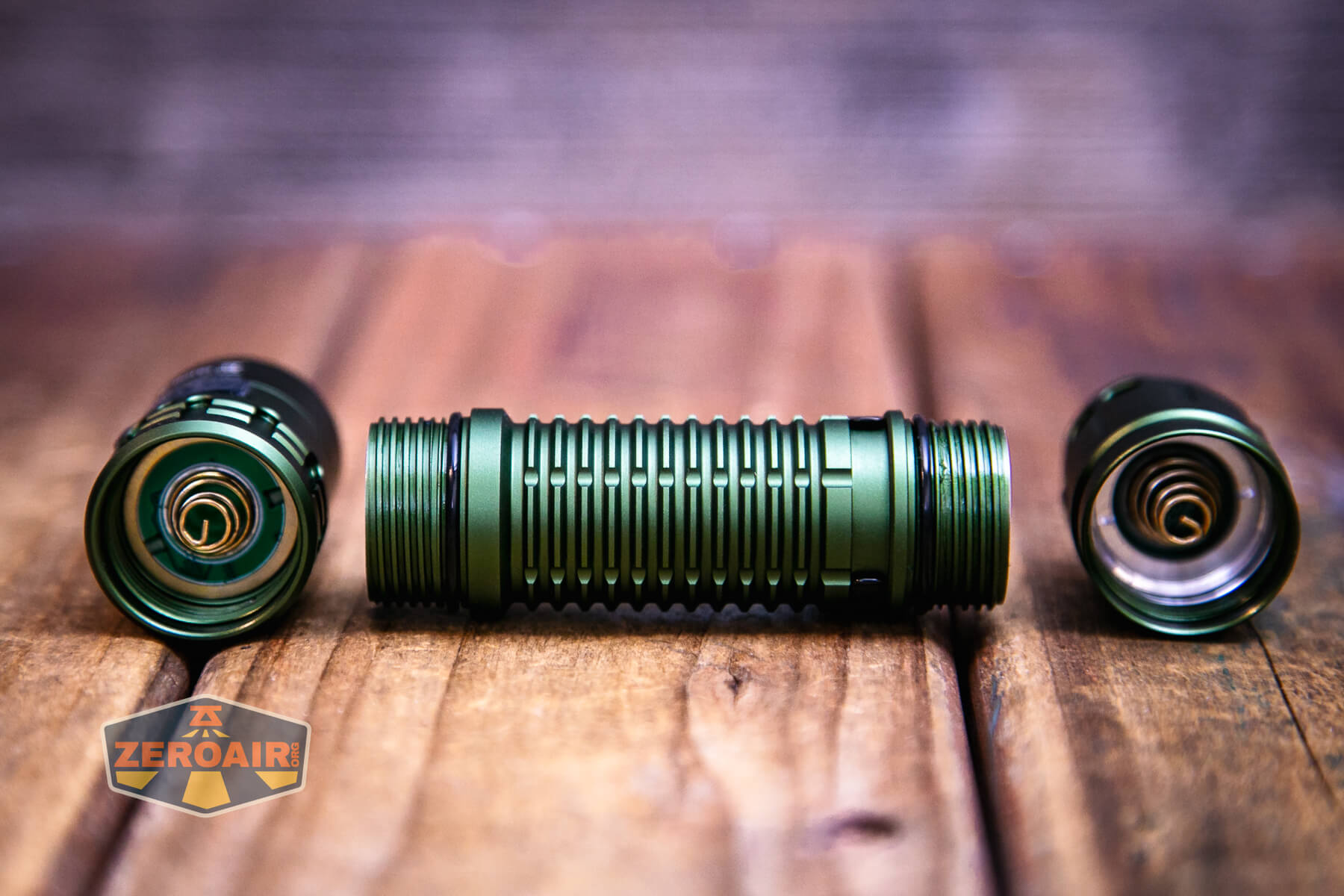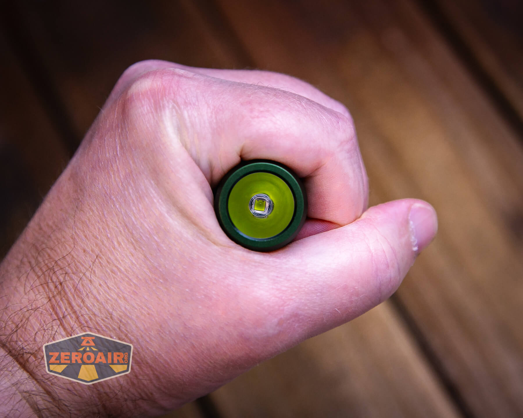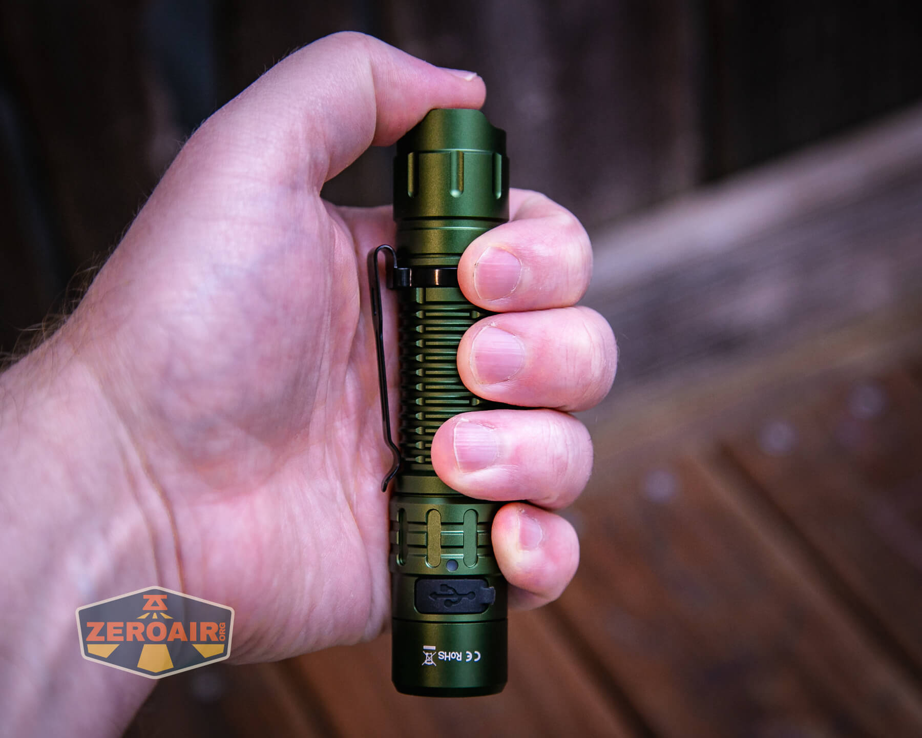 The Wurkkos TD02 green flashlight is an inexpensive (loosely) tactical light with a single emitter and TIR. It runs one 18650 and has built-in USB-C charging.