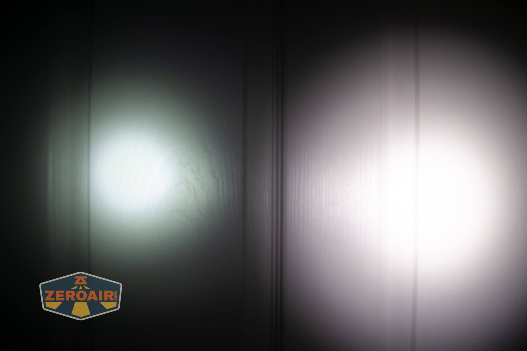 I keep the test flashlight on the left and the BLF-348 reference flashlight on the right. These photos are taken around 18 inches from the door.