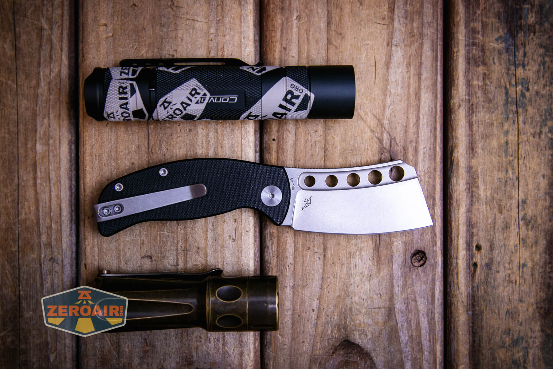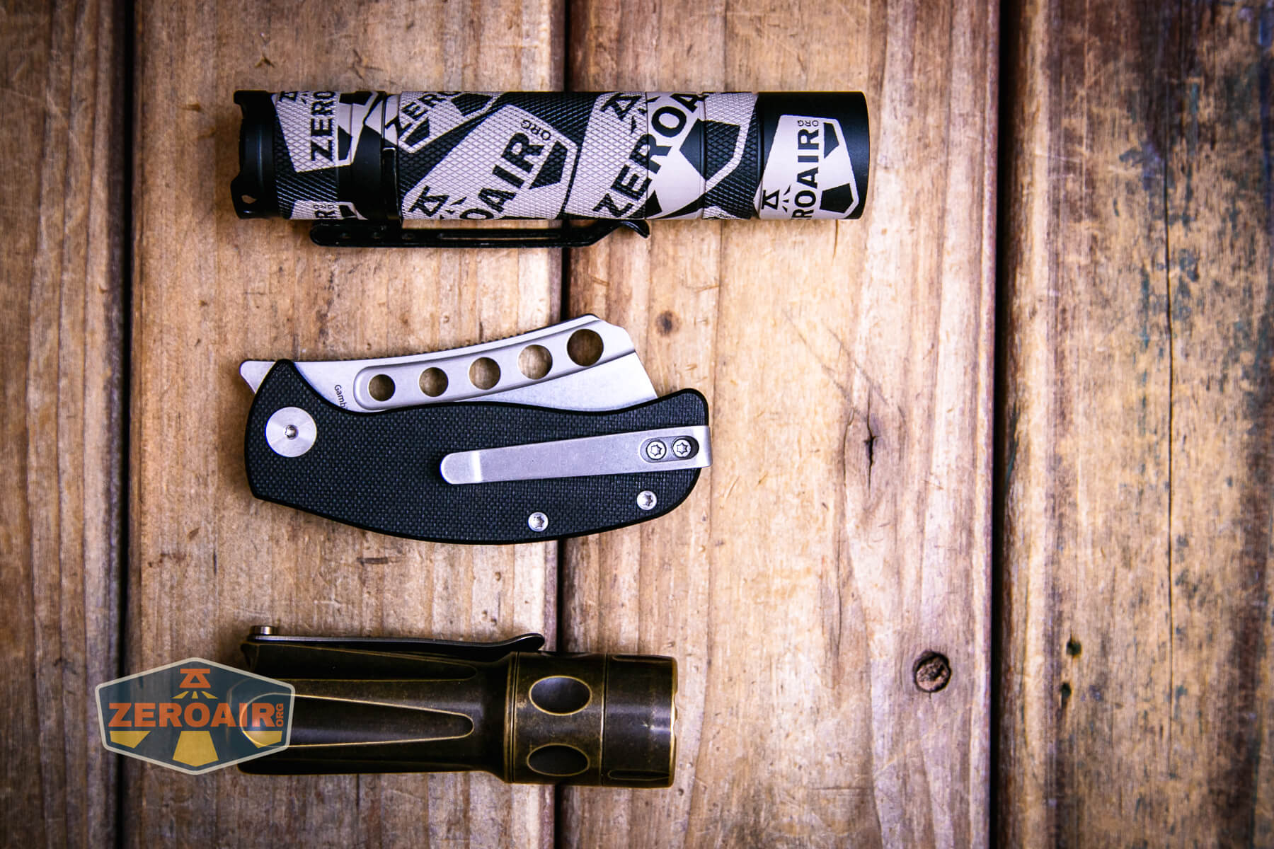 Also above is the knife beside a TorchLAB BOSS 35, an 18350 light. I reviewed the aluminum version of that light in both 35 and 70 formats. I also reviewed that specific edition, the “Oveready BOSS FT Collector Vintage Brass” 35. I love it!