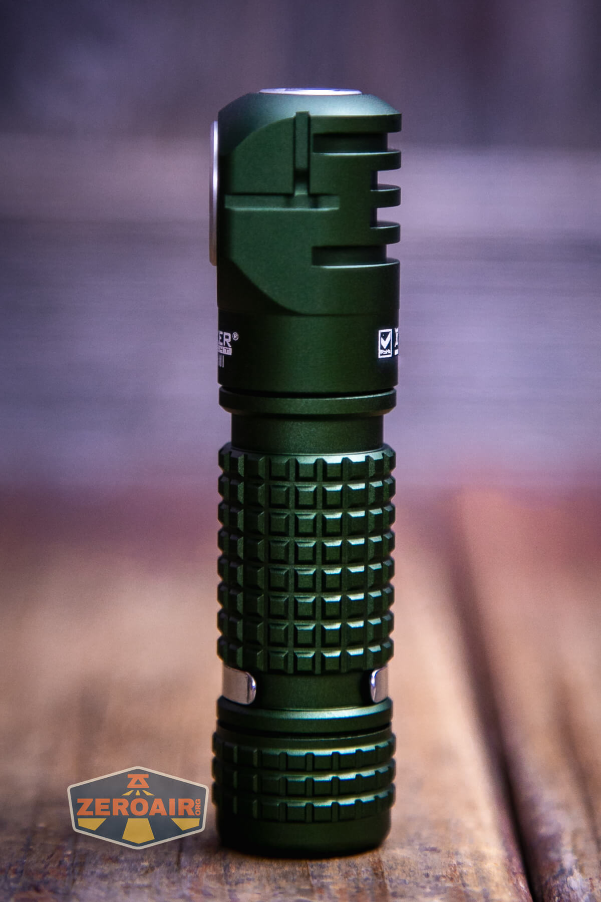 If the flashlight will headstand, I’ll show it here (usually the third photo). If the flashlight will tailstand, I’ll also show that (usually in the fourth photo).