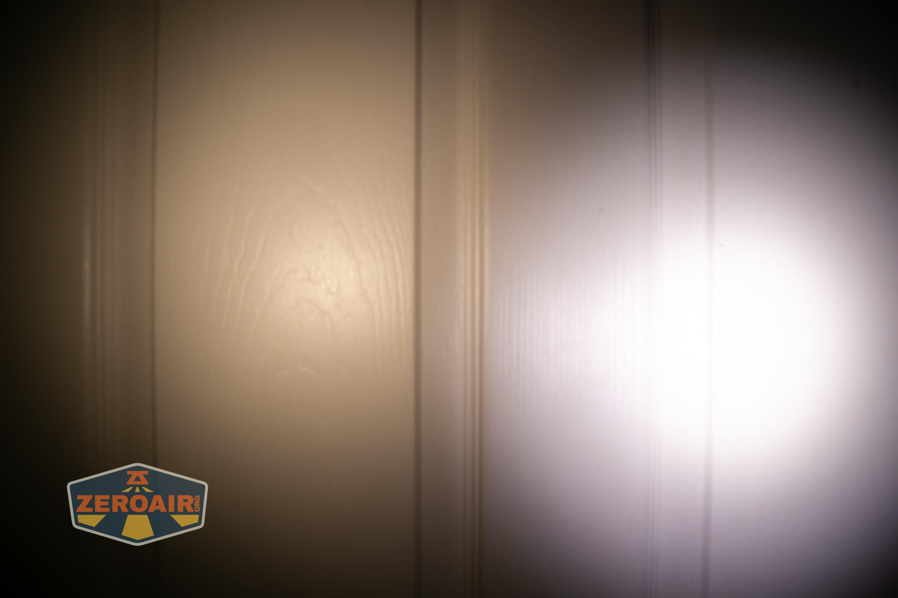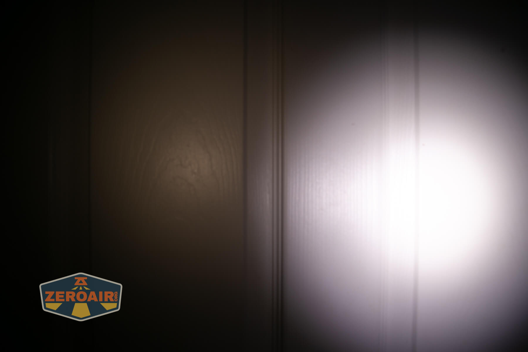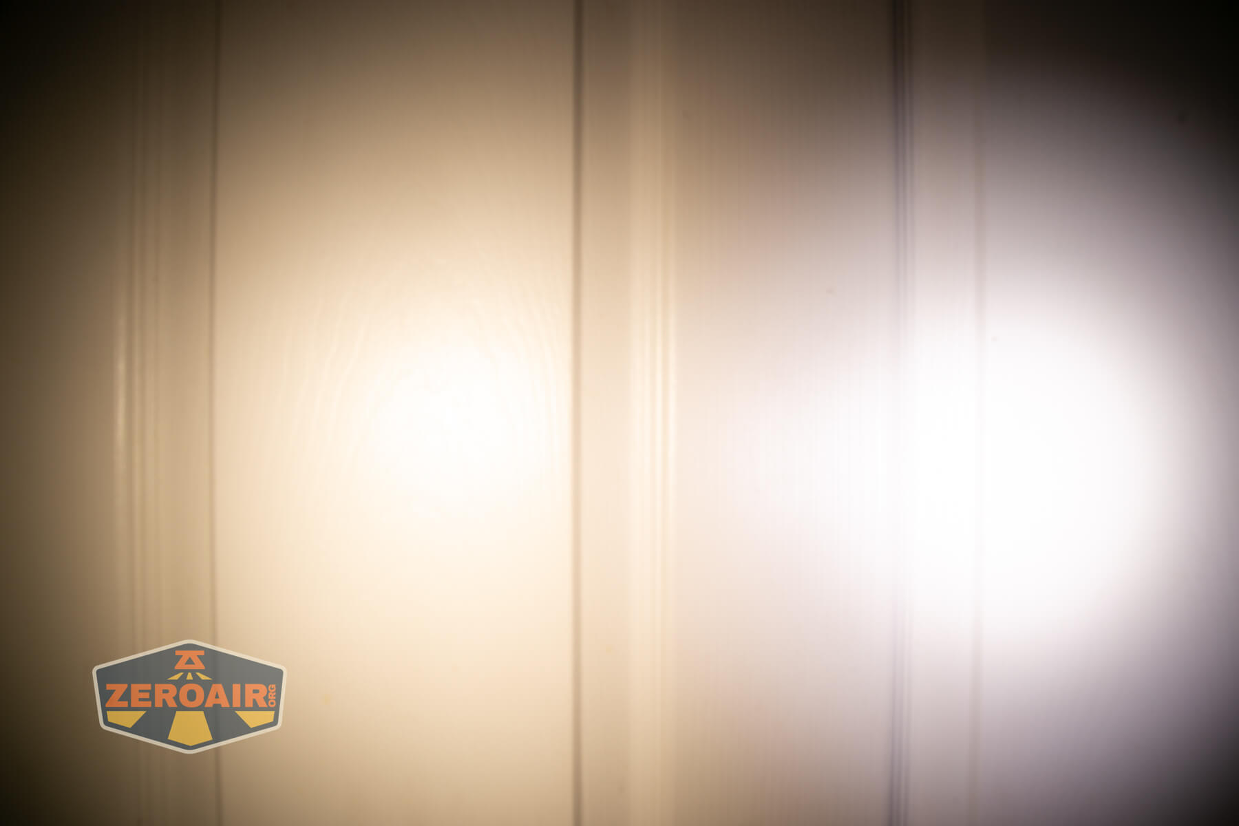 I keep the test flashlight on the left and the BLF-348 reference flashlight on the right. These photos are taken around 18 inches from the door.