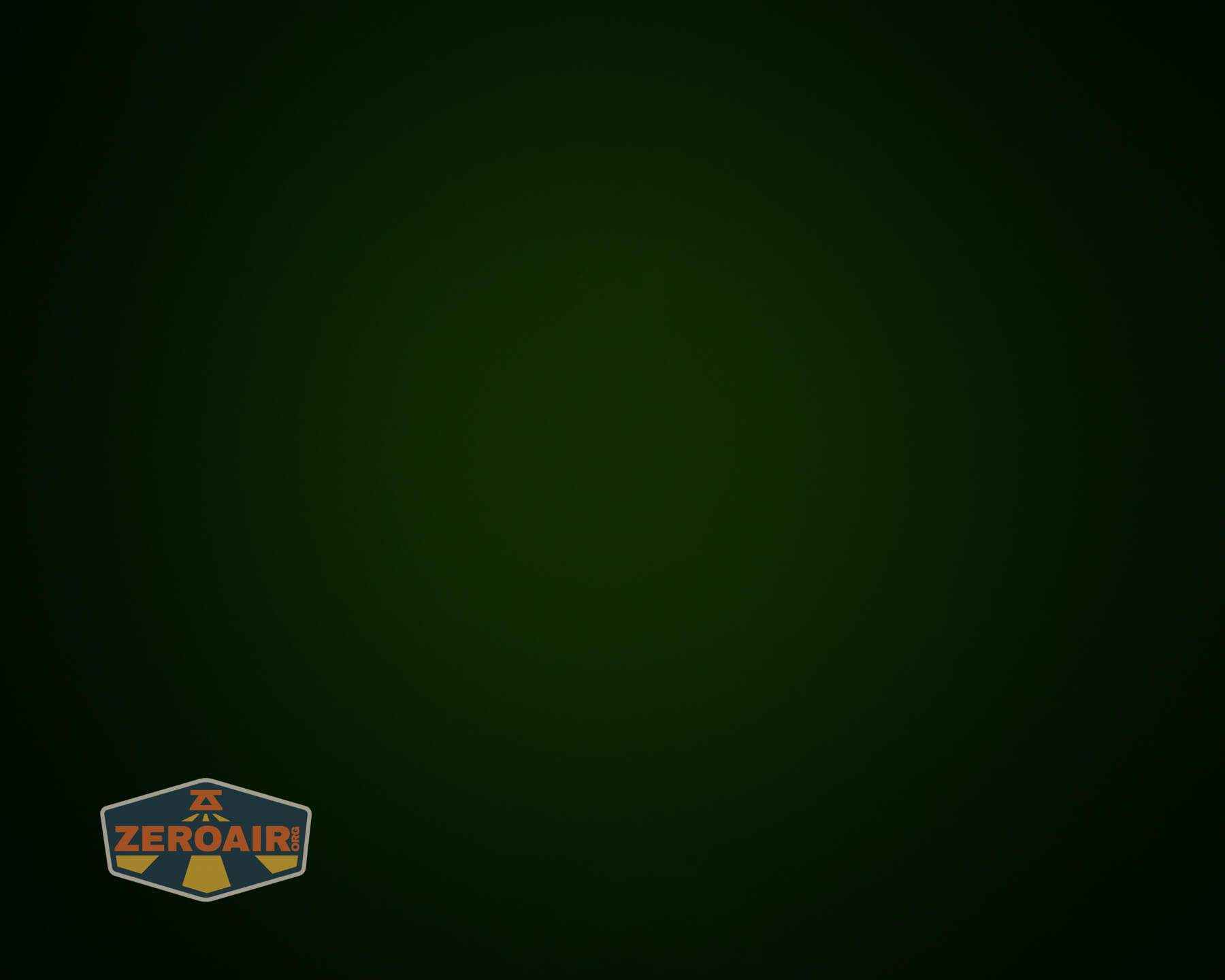 A green Manker E03H II flashlight with a textured grip is lying on a wooden surface. The lens and LED are visible, referencing the design evolution seen in the Manker E03H III headlamp. The ZEROAIR logo appears in the bottom left corner.