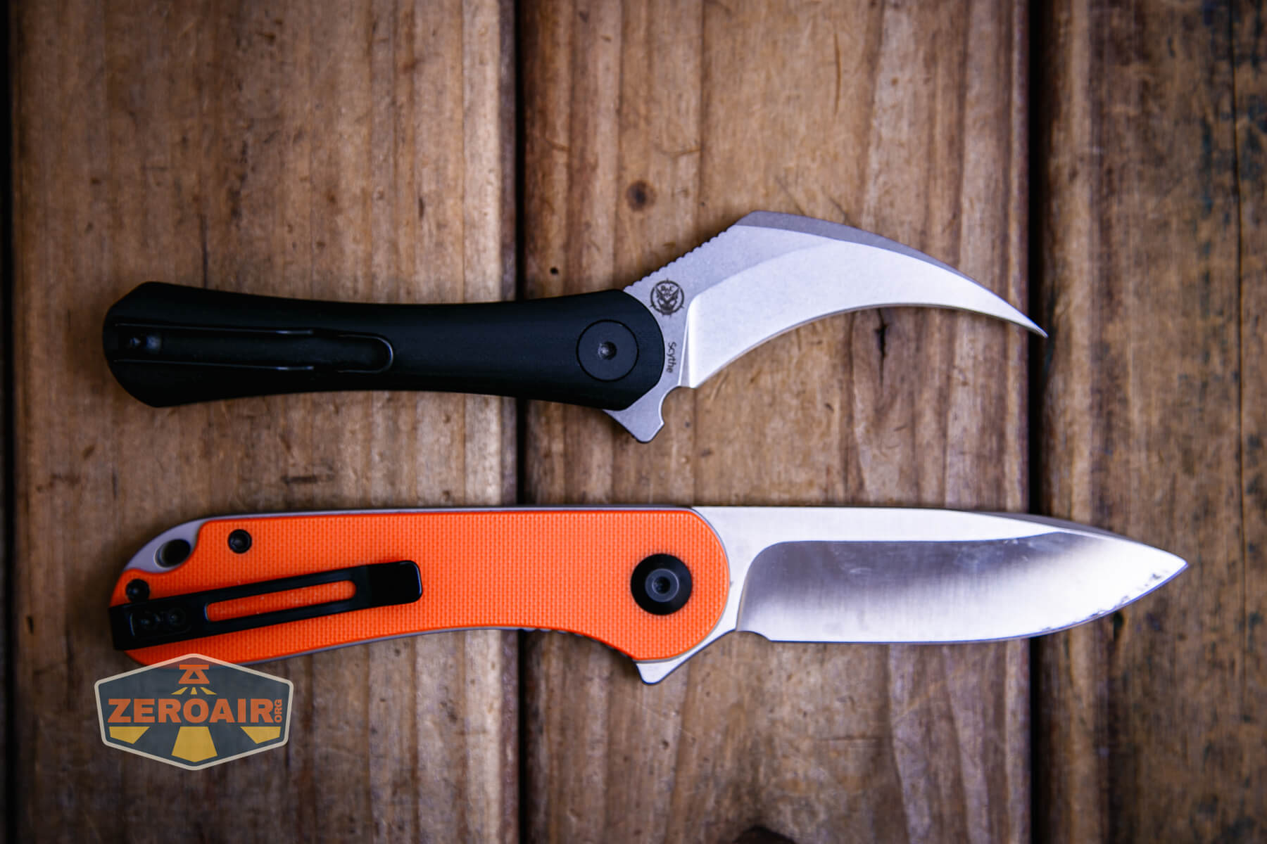 Below is the Shieldon Scythe folding knife with the Civivi Elementum. I still use that knife so much!