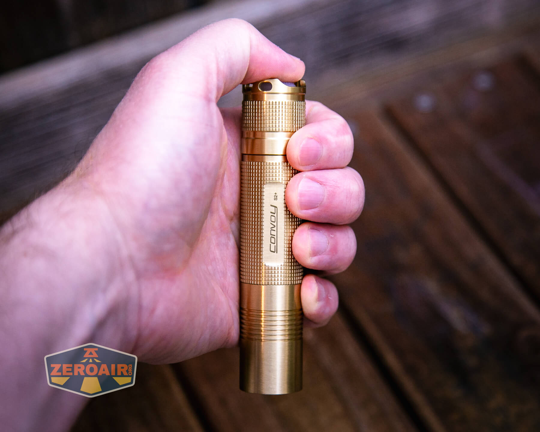 It’s great! As stated above, I’ve tested the Convoy S2+ before (a few times, actually) and even once in an orange color. I’ve tested and posted the Convoy S2+ many times (because I’m a huge fan) but this post is to celebrate brass!