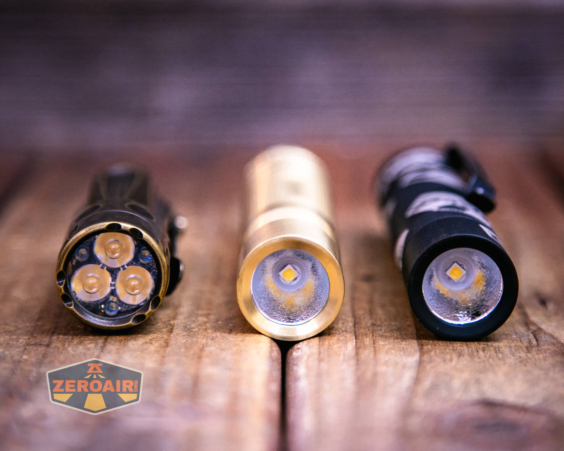 Also above is the light beside a TorchLAB BOSS 35, an 18350 light. I reviewed the aluminum version of that light in both 35 and 70 formats. I also reviewed that specific edition, the “Oveready BOSS FT Collector Vintage Brass” 35. I love it!