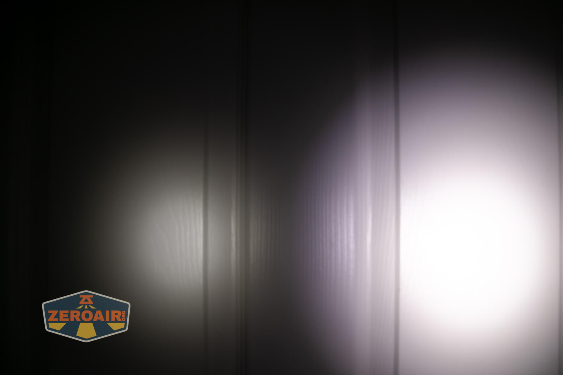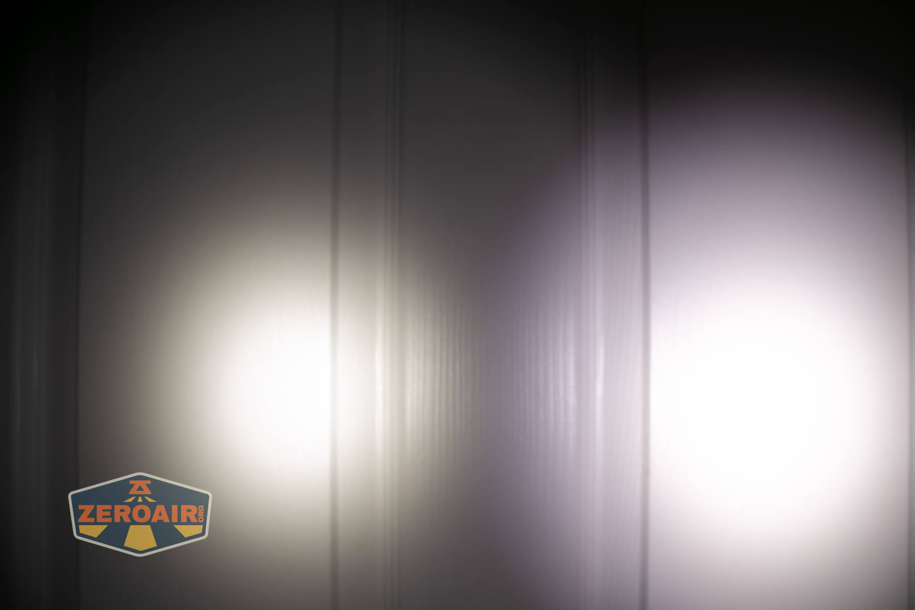 I keep the test flashlight on the left and the BLF-348 reference flashlight on the right. These photos are taken around 18 inches from the door.