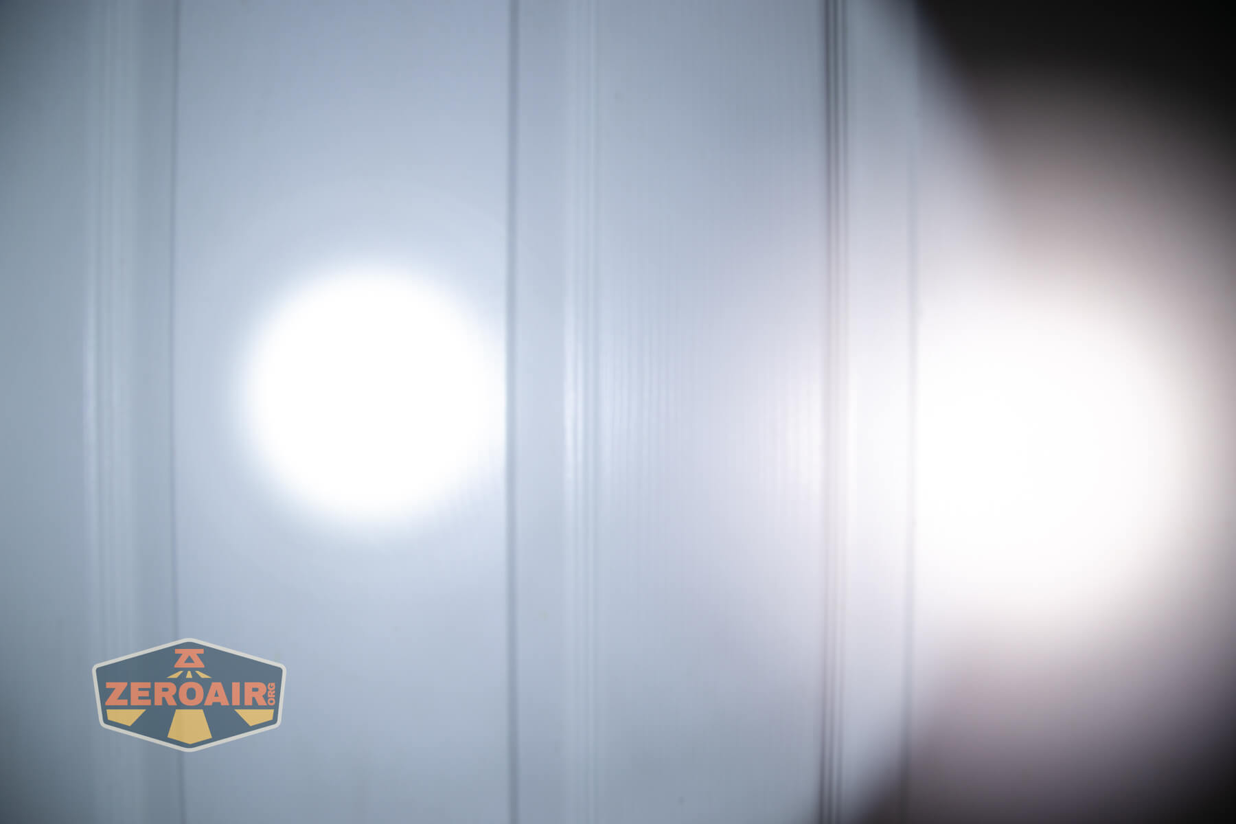 I keep the test flashlight on the left and the BLF-348 reference flashlight on the right. These photos are taken around 18 inches from the door.