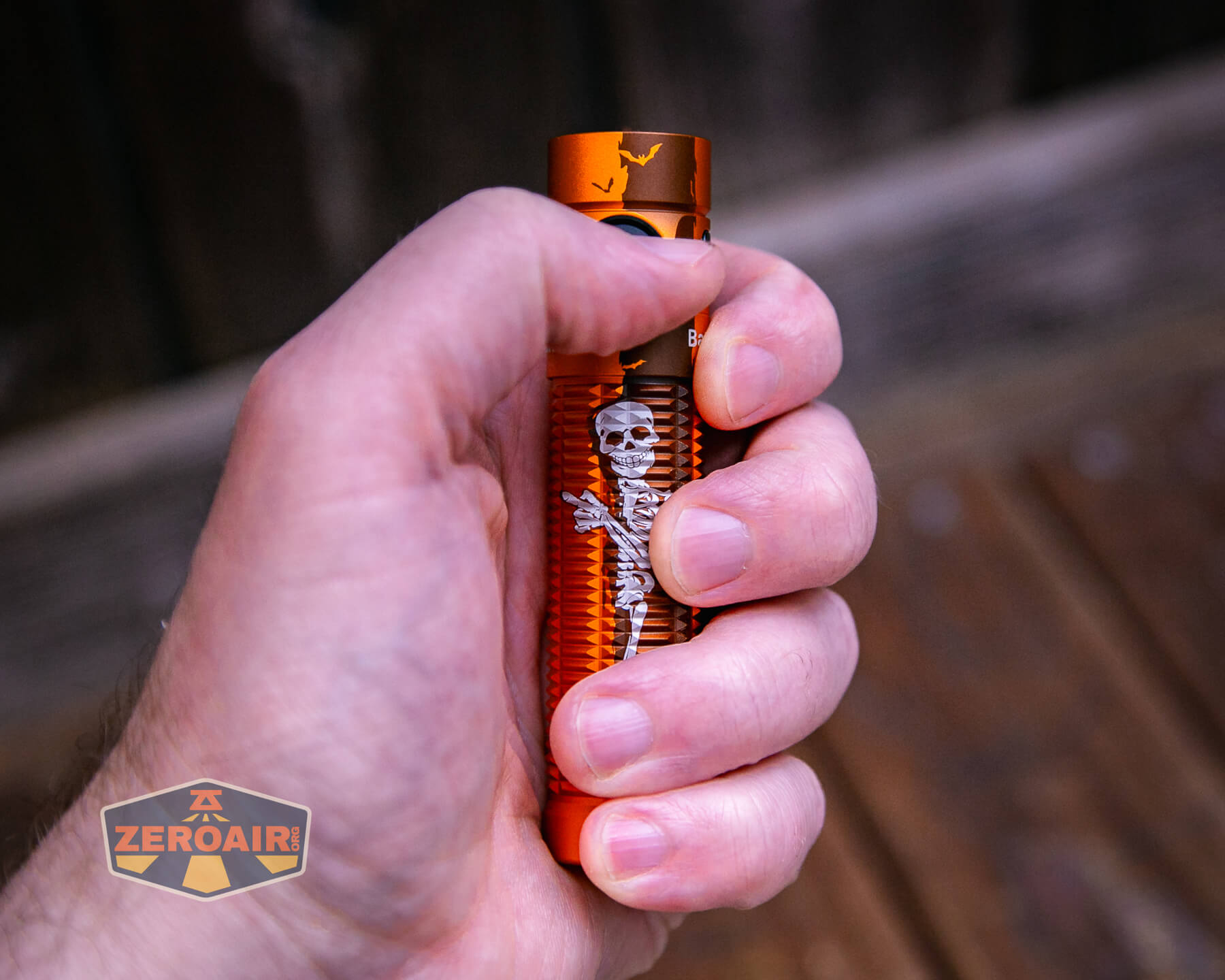 The Olight Baton 3 Pro Skeleton flashlight is orange and has a Halloween skeleton design. Otherwise, it’s the same great Baton 3 Pro as previously tested.