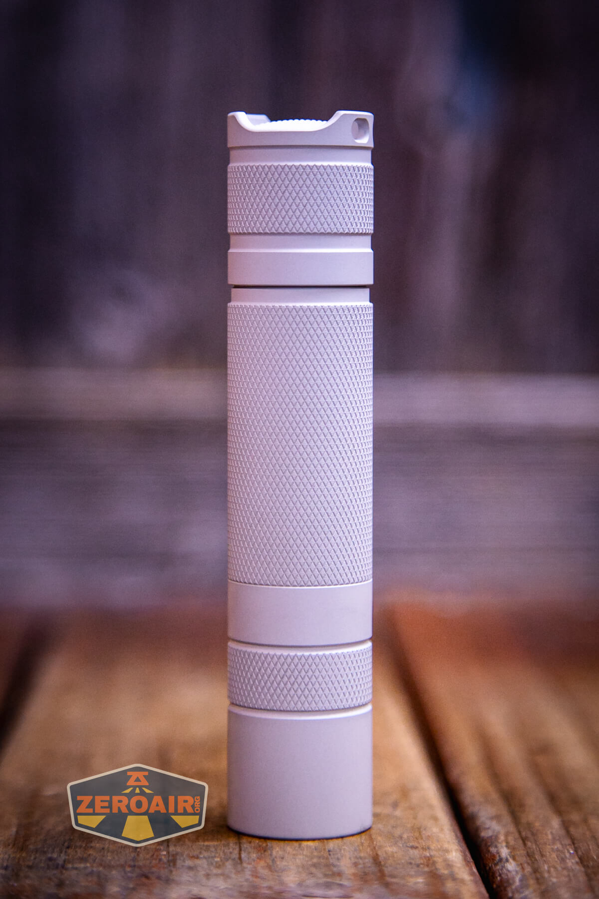 Convoy is very highly regarded by flashlight enthusiasts for having great build quality and low prices. This Convoy S2+ MAO flashlight is no exception. I bought this version specifically to see the MAO (micro-arc oxidation). I like it! It’s well done. I guess MAO can be a sort of fragile finish and this MAO doesn’t feel different from other MAOs. So you can expect it to show marks and possibly be scratched. Now you know!