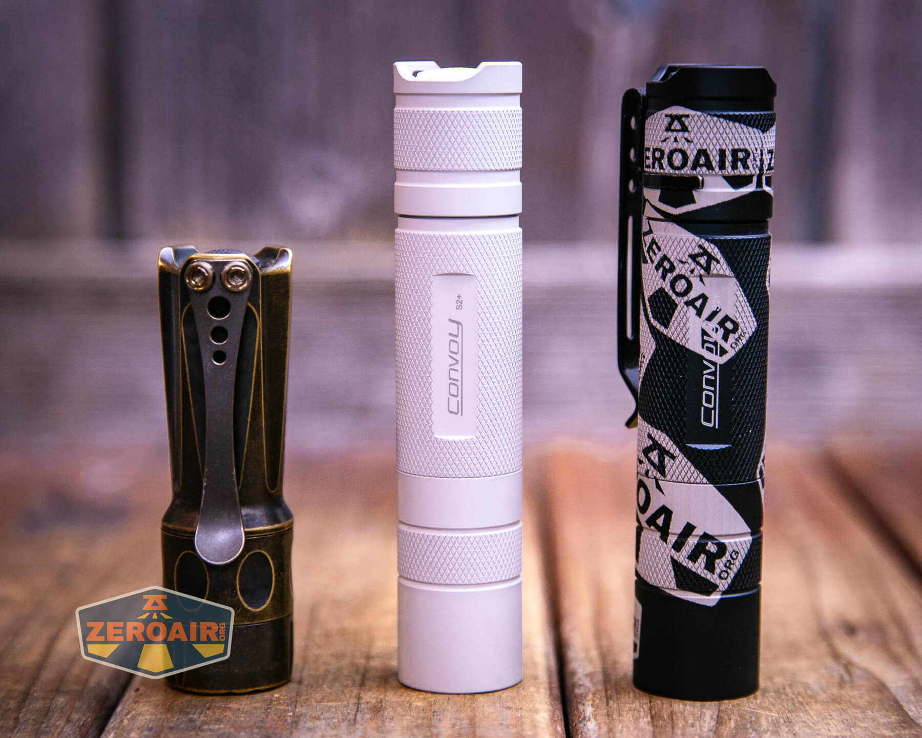 An “old version” of the Convoy S2+ exists. It has different threads from this current revision. Of the current revision (with better threads!) there are a ton of colors and emitters. There are even metal variants, including this Convoy S2+ MAO flashlight in aluminum, brass, and copper. All sorts of emitter options are available, too!