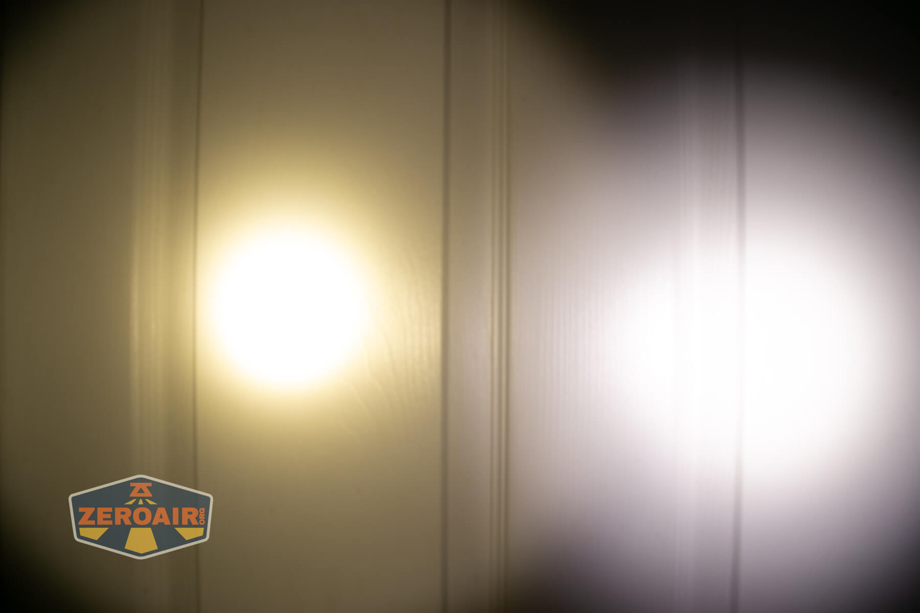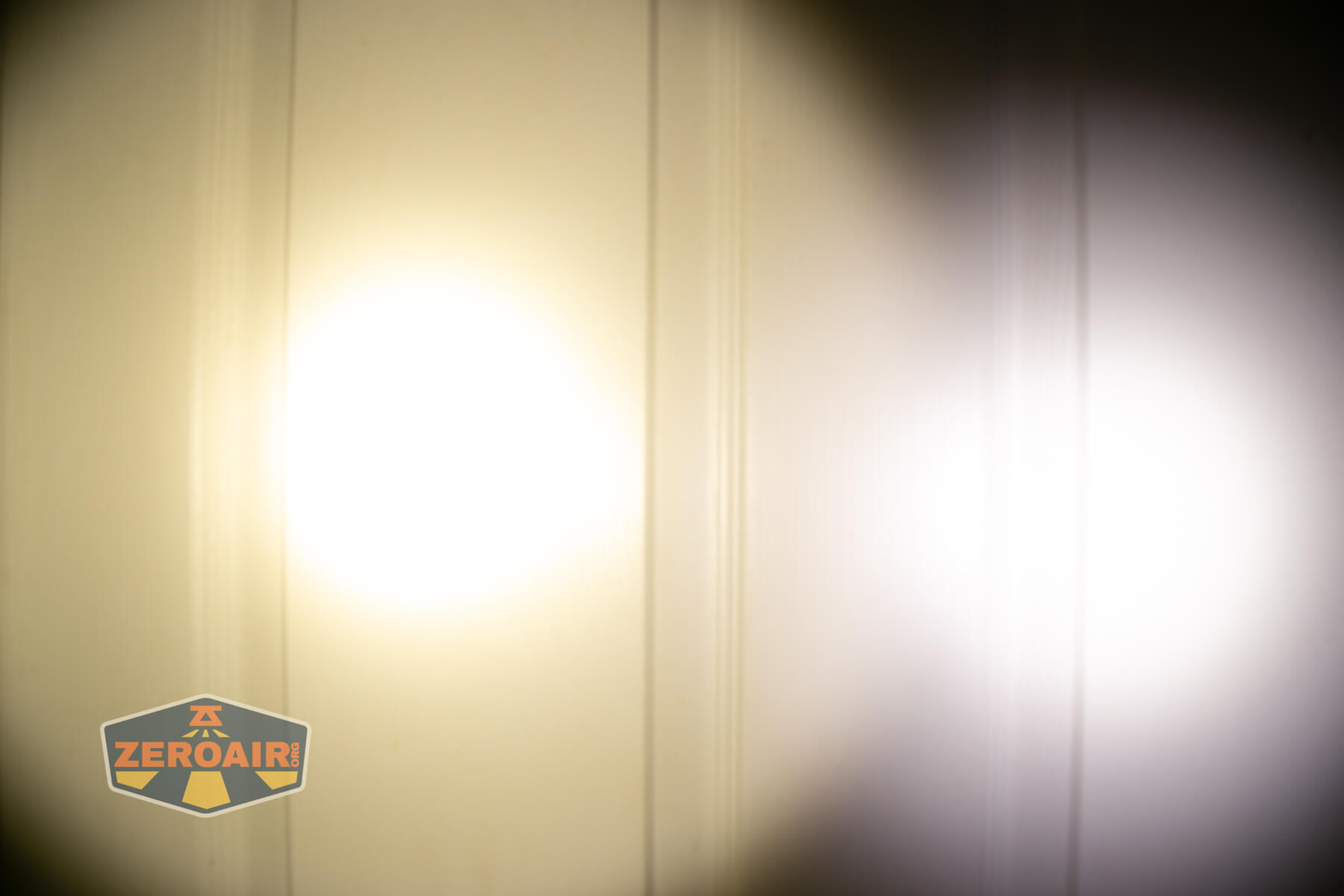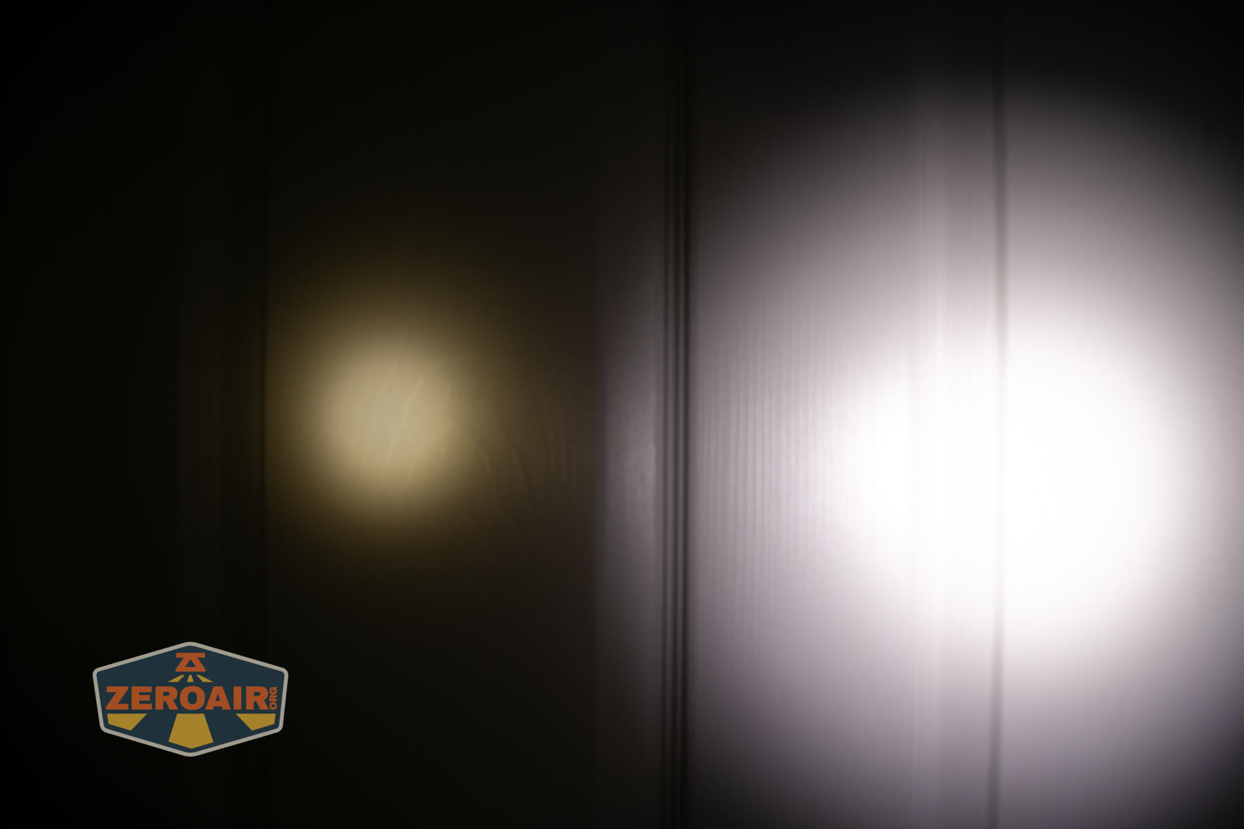 I keep the test flashlight on the left and the BLF-348 reference flashlight on the right. These photos are taken around 18 inches from the door.