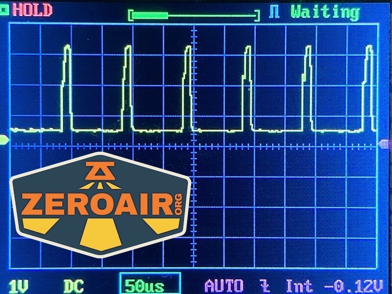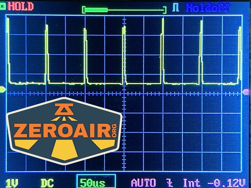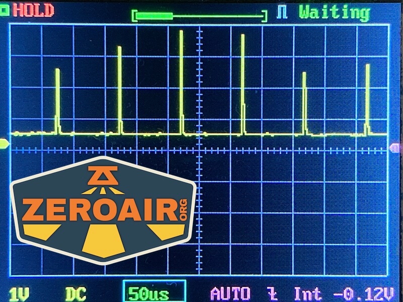 Here you can see a “baseline” – a chart with almost no light hitting the sensor. Then there’s the Ultrafire WF-602C flashlight, which has some of the worst PWM I’ve seen. It’s so bad that I used a post about it to explain PWM! Here are multiple timescales (10ms, 5ms, 2ms, 1ms, 0.5ms, 0.2ms) to make comparing this “worst” PWM light to the test light easier. That post also explains why I didn’t test the WF-602C at the usual 50us scale.