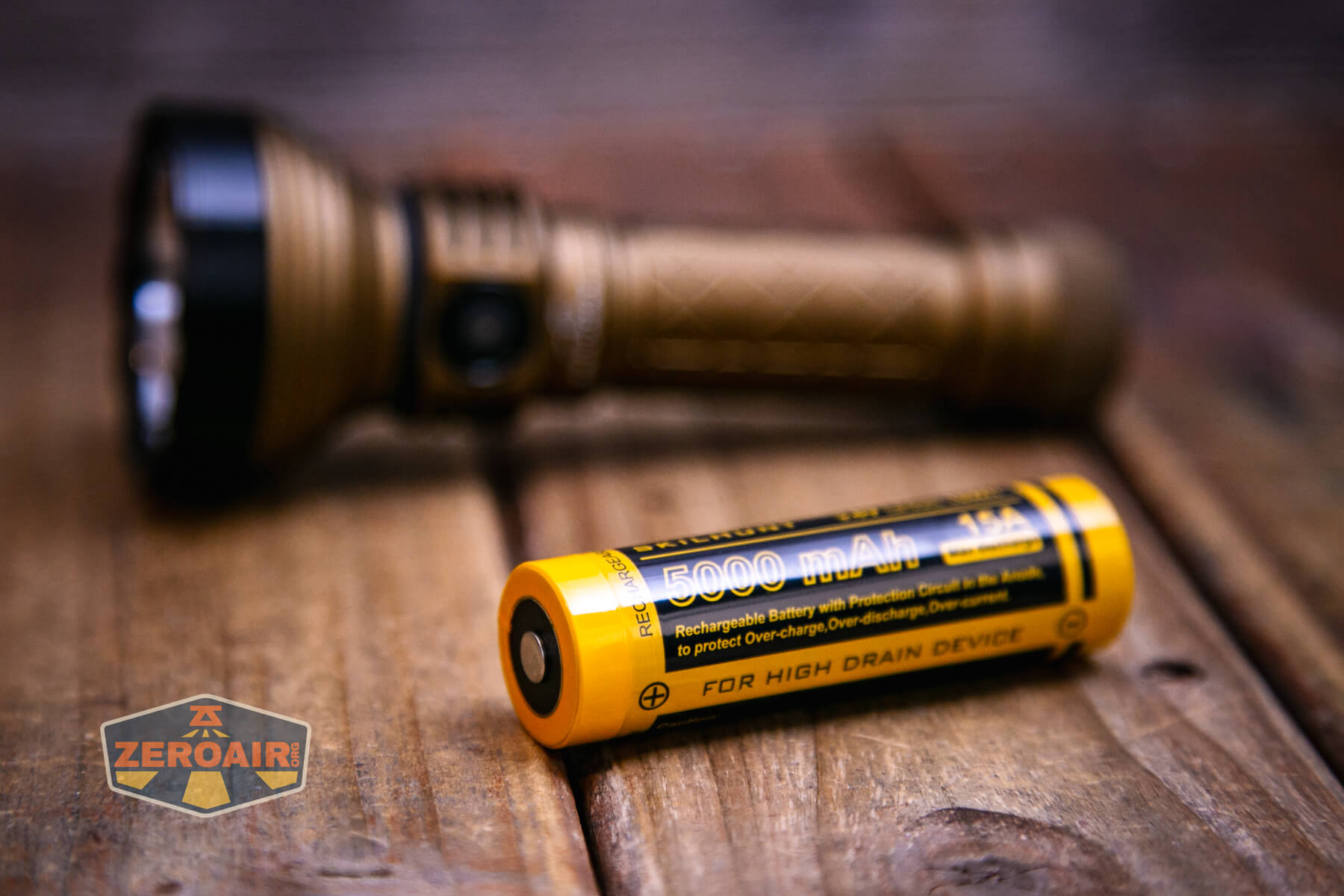 The Skilhunt EC500 Coyote neutral white flashlight runs on a single lithium-ion cell. It’s sized for an 21700 and an appropriate 5000mAh cell is available with the purchase.